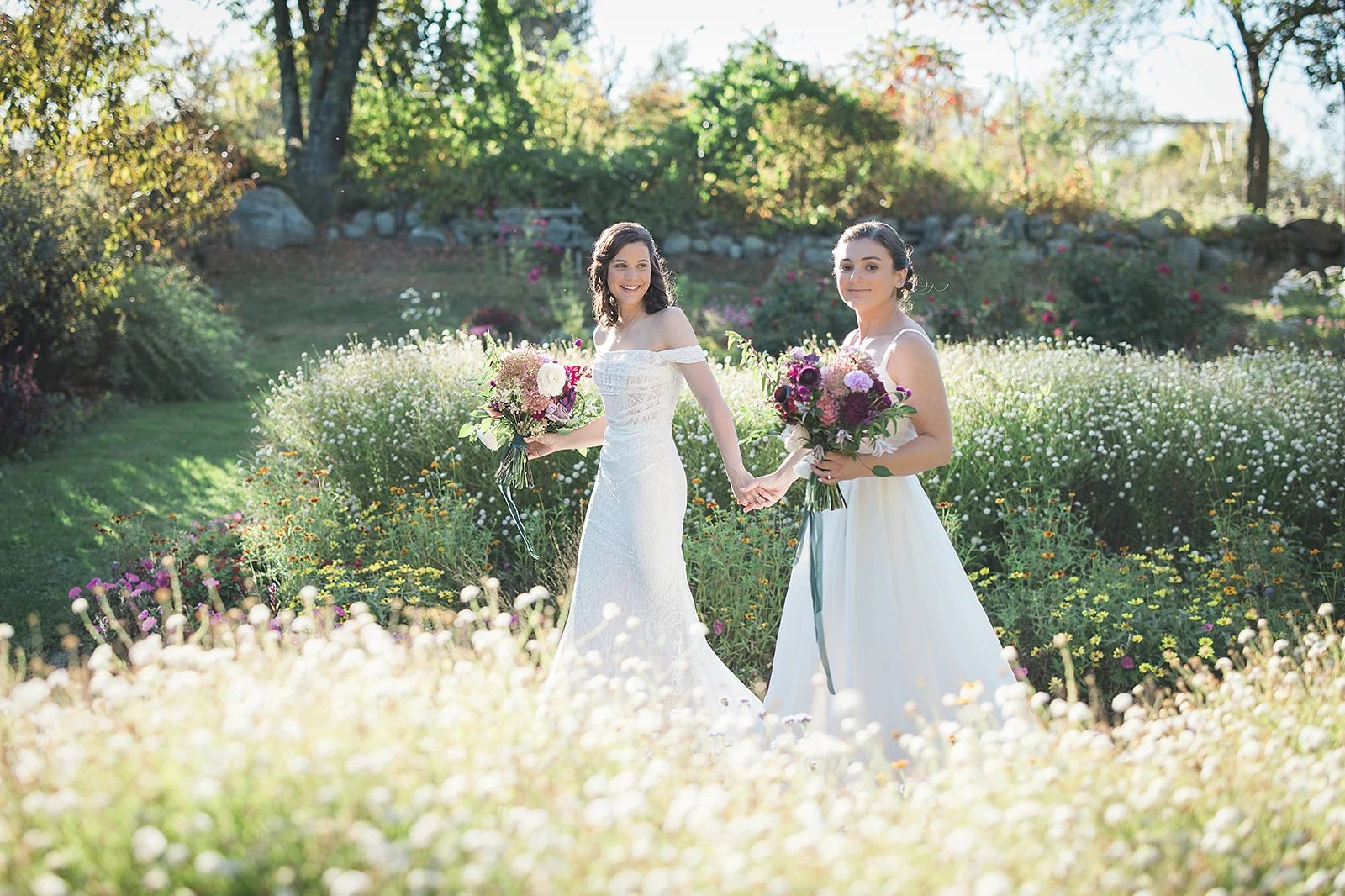Bespoke Florals: Hand-tied bouquet and boutonniere for the couple, along with lush "flower-scapes" for your tables and a decorated ceremony arbor—all grown directly on our acreage. Flower designs throughout- on grazing table, bar, welcome table, in bathrooms and more.