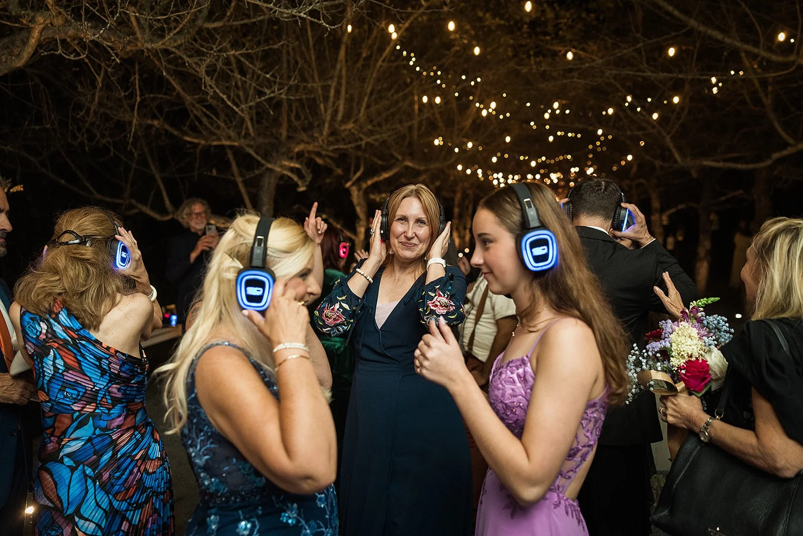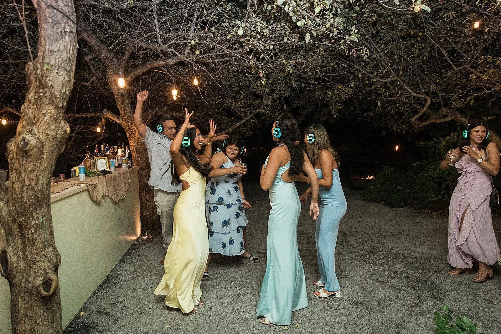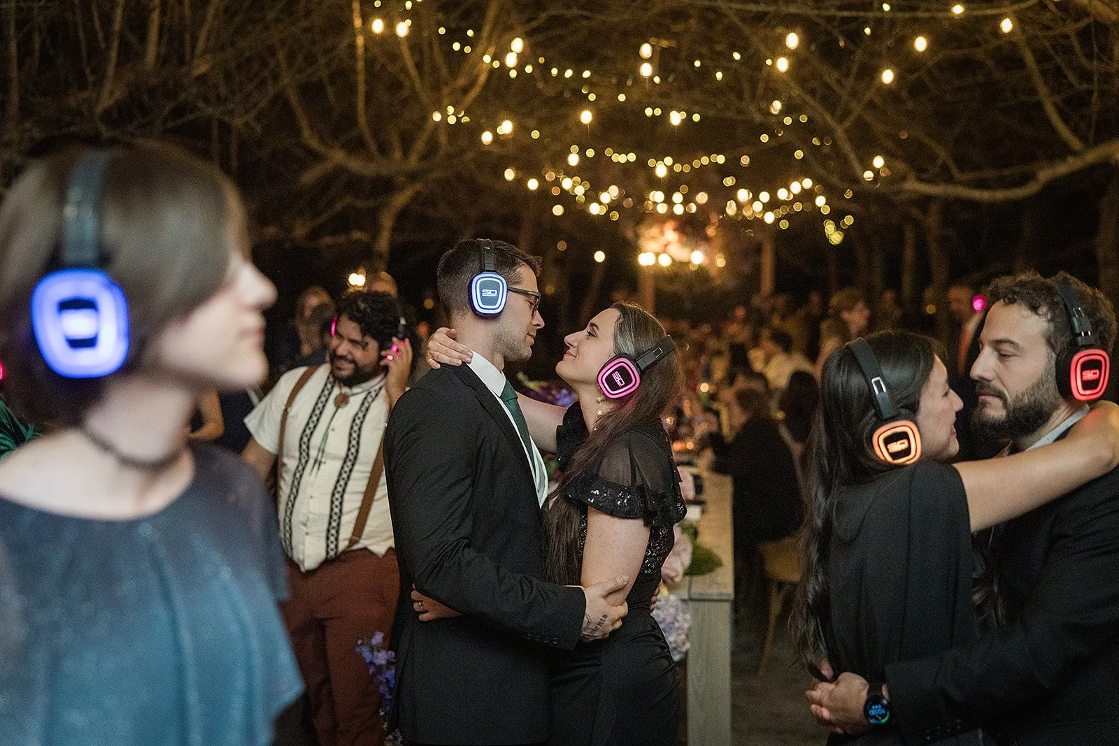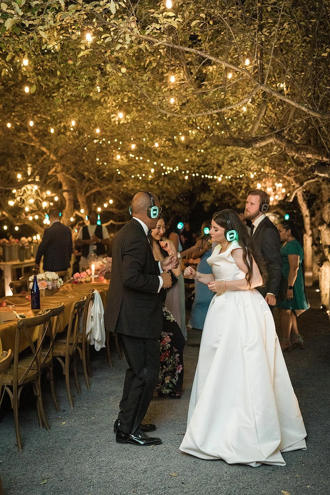 Guests can switch between channels at will. It’s a fascinating social experience to see half the crowd dancing to one beat while the other half is "grooving" to another, all under the stars. For many reasons- specifically in regard to music- I think people love the attention to detail at our Moderé weddings because guests get to even choose there favorite type of music! People always say “best experience ever best wedding ever!”