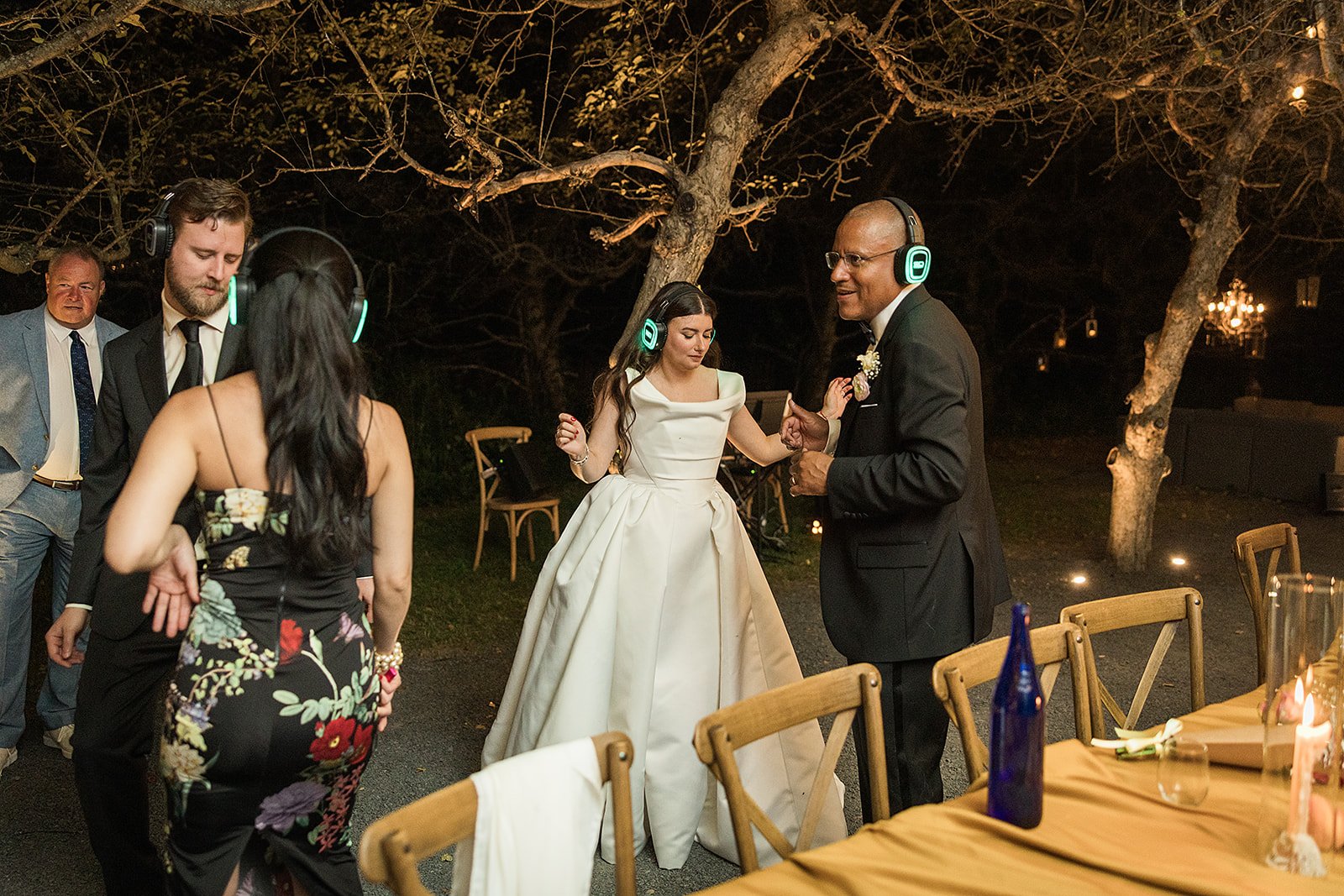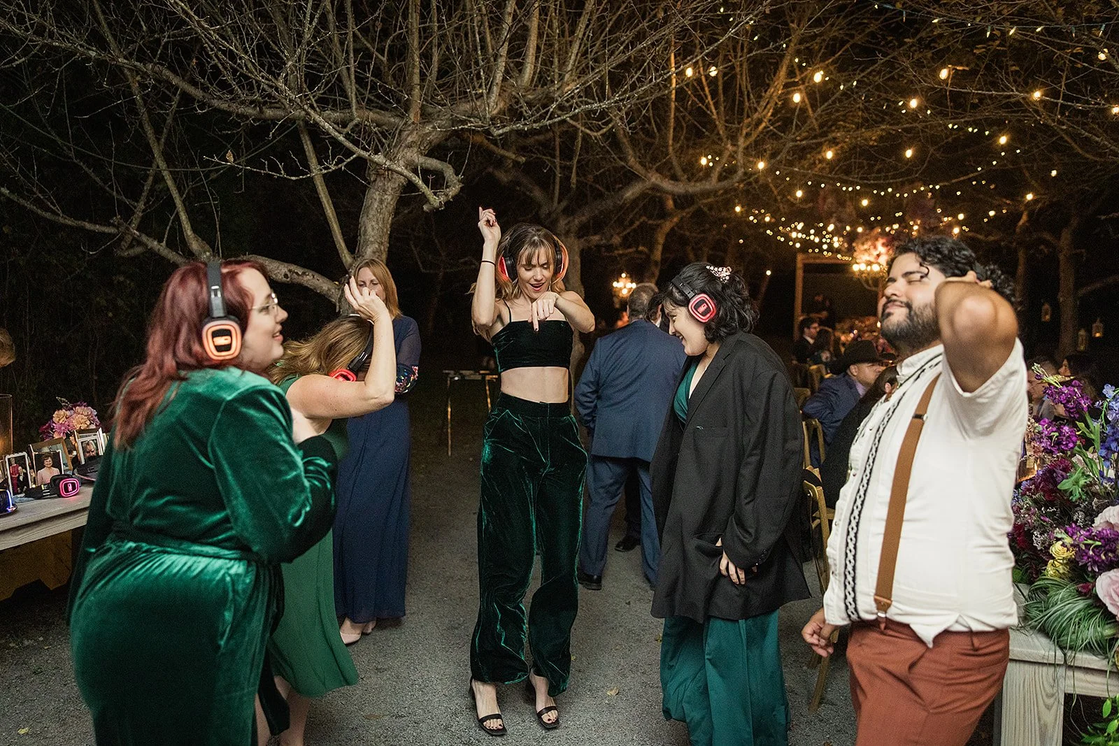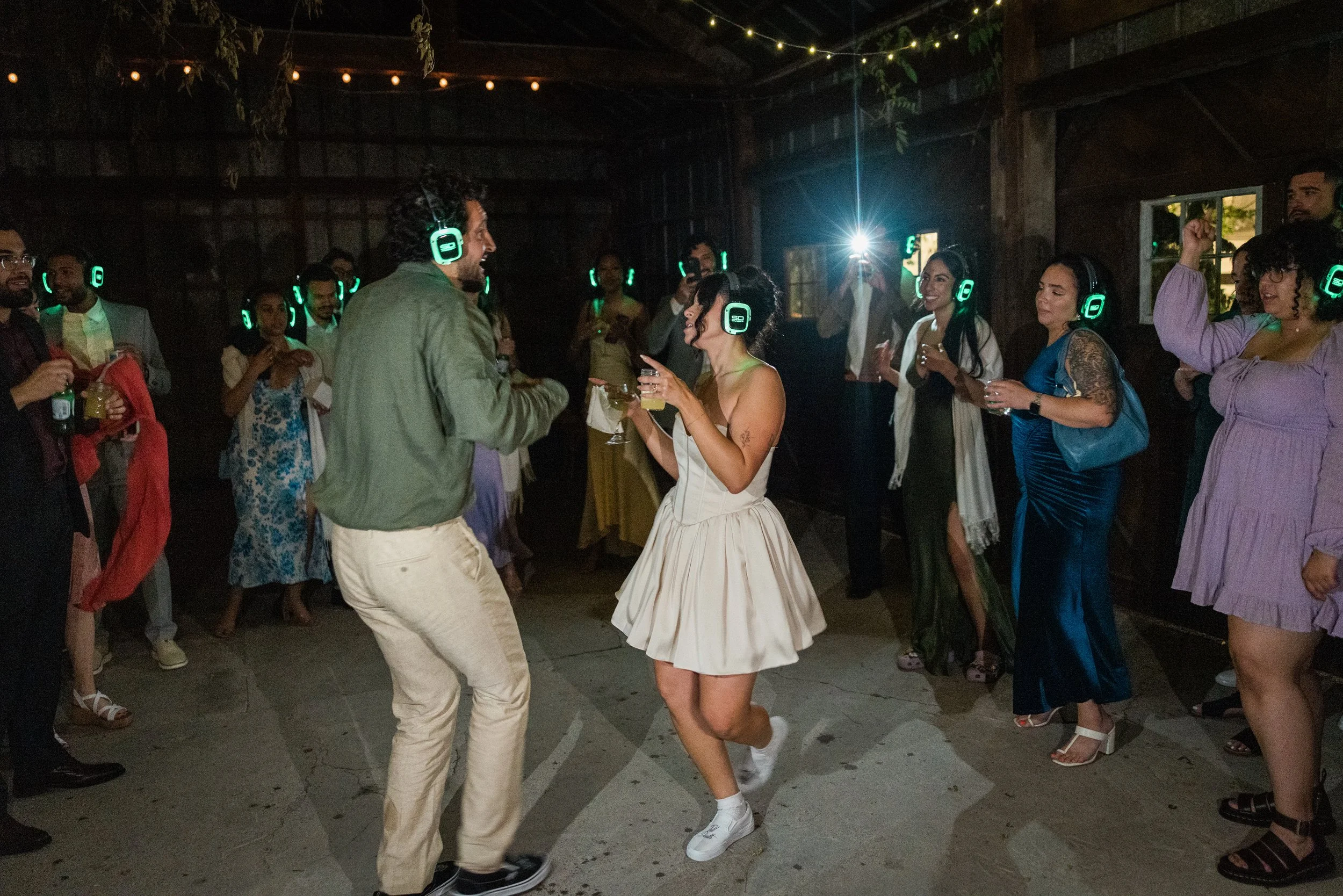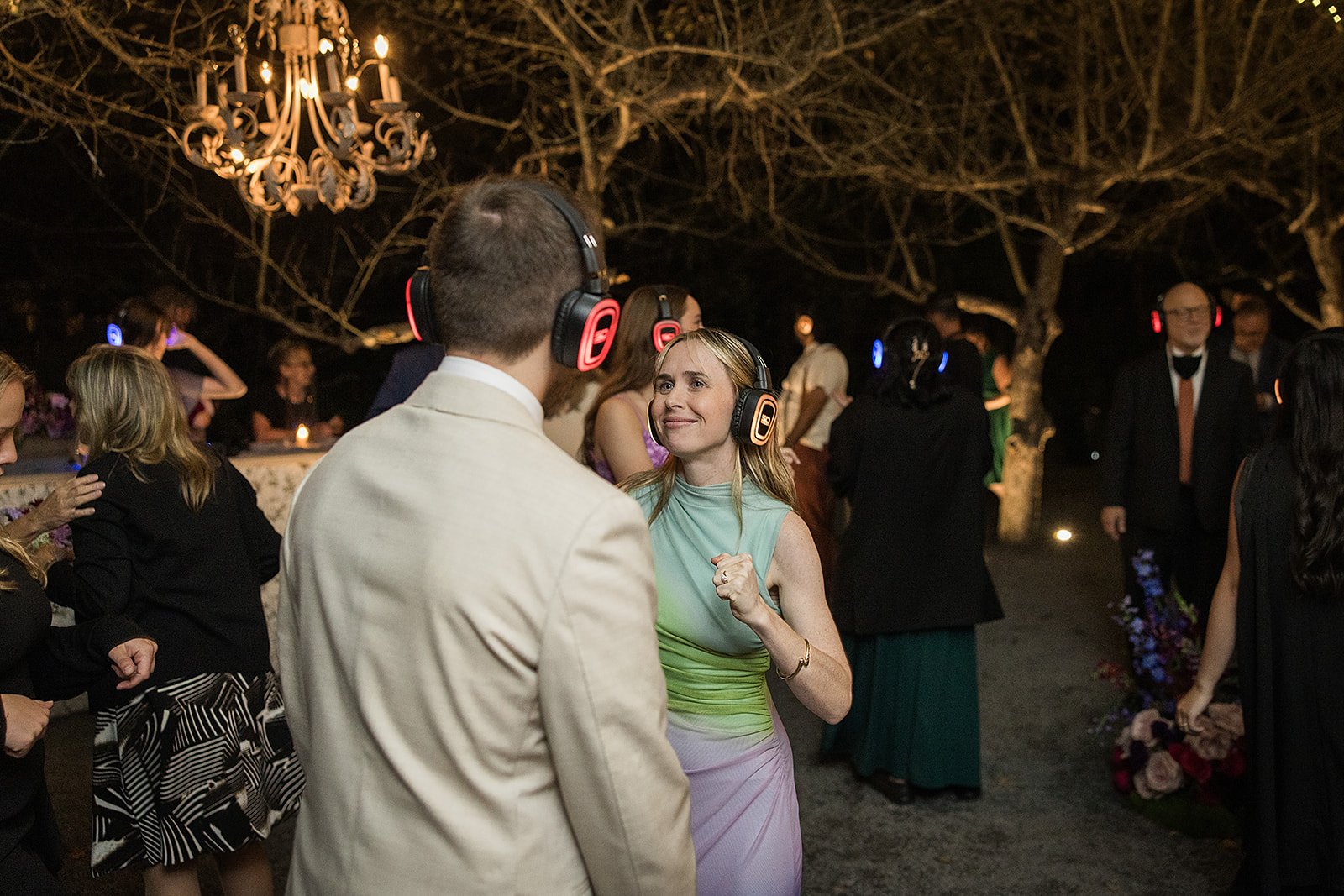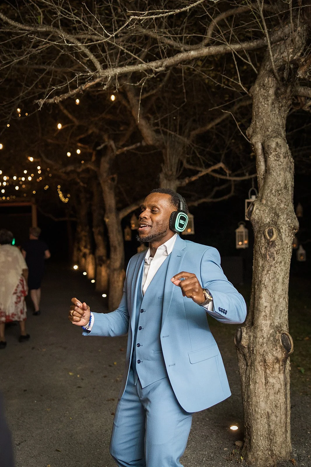 Guests can switch between channels at will. It’s a fascinating social experience to see half the crowd dancing to one beat while the other half is "grooving" to another, all under the stars. For many reasons- specifically in regard to music- I think people love the attention to detail at our Moderé weddings because guests get to even choose there favorite type of music! People always say “best experience ever best wedding ever!”