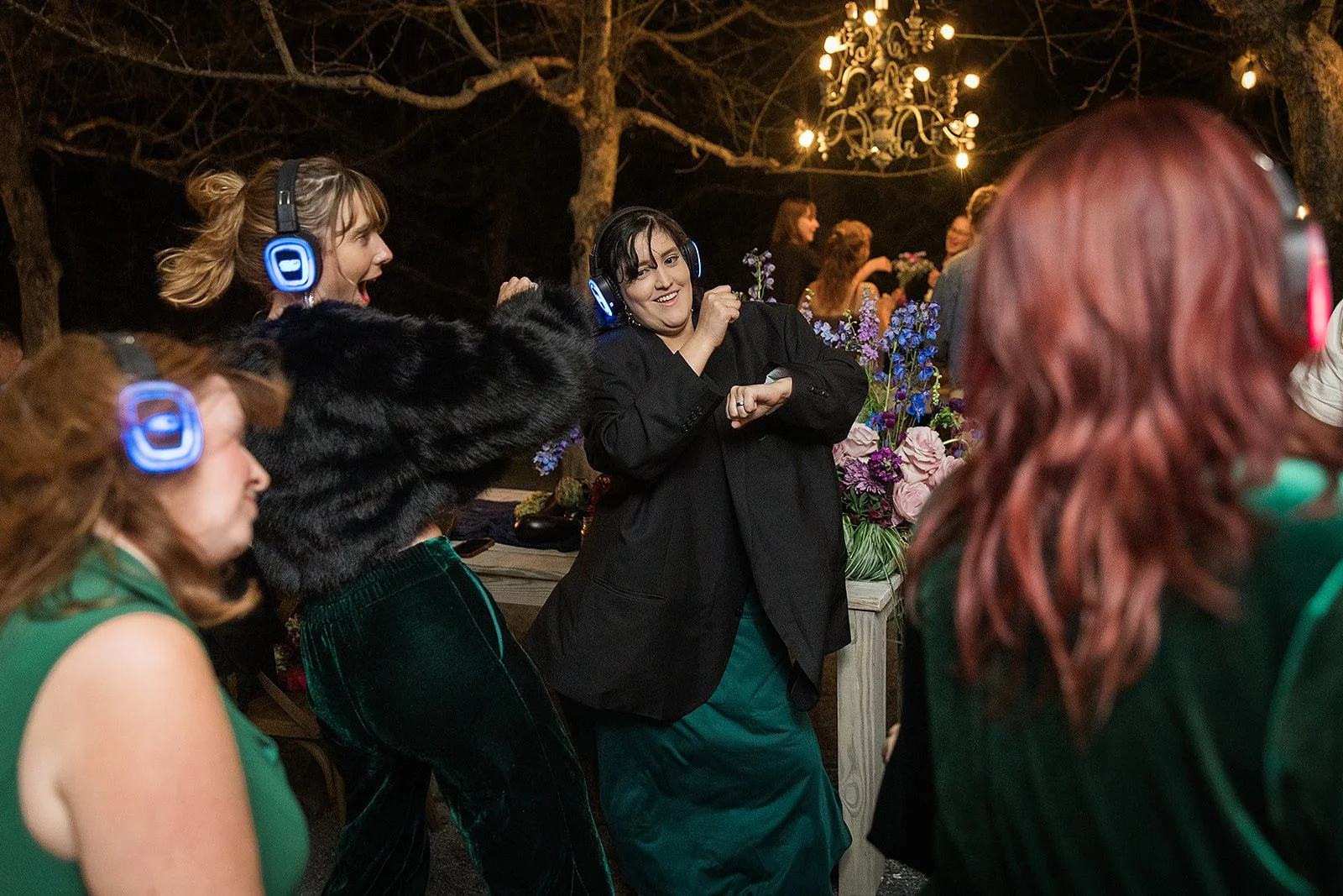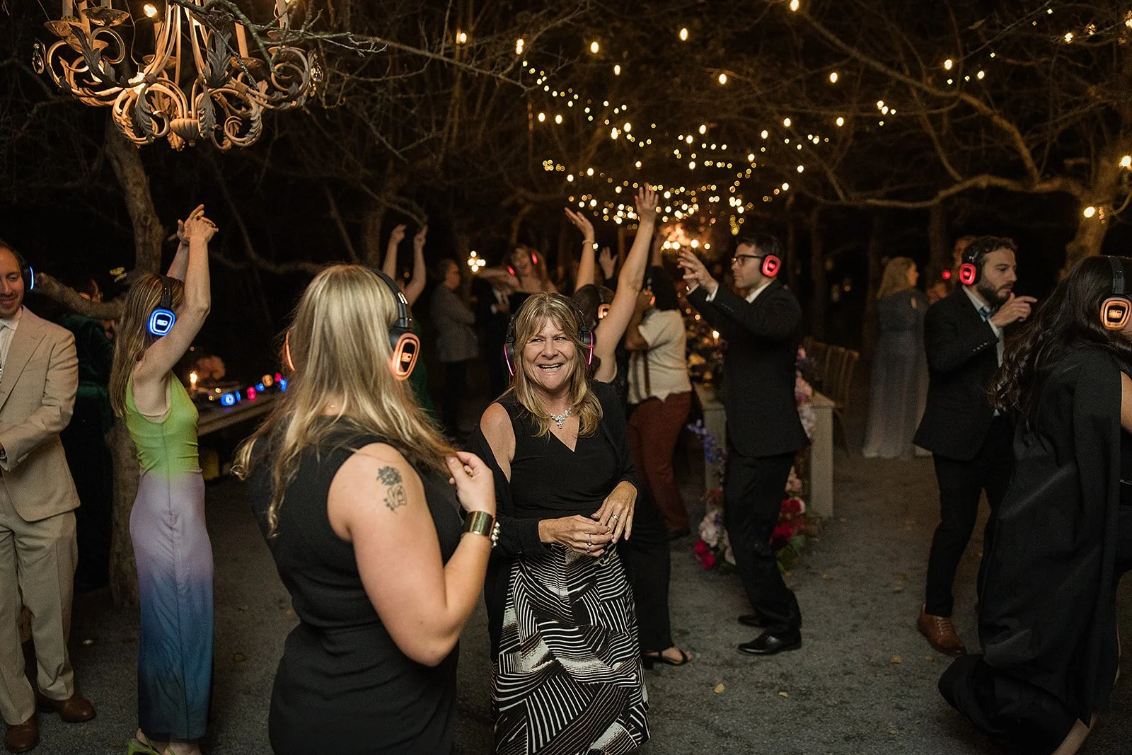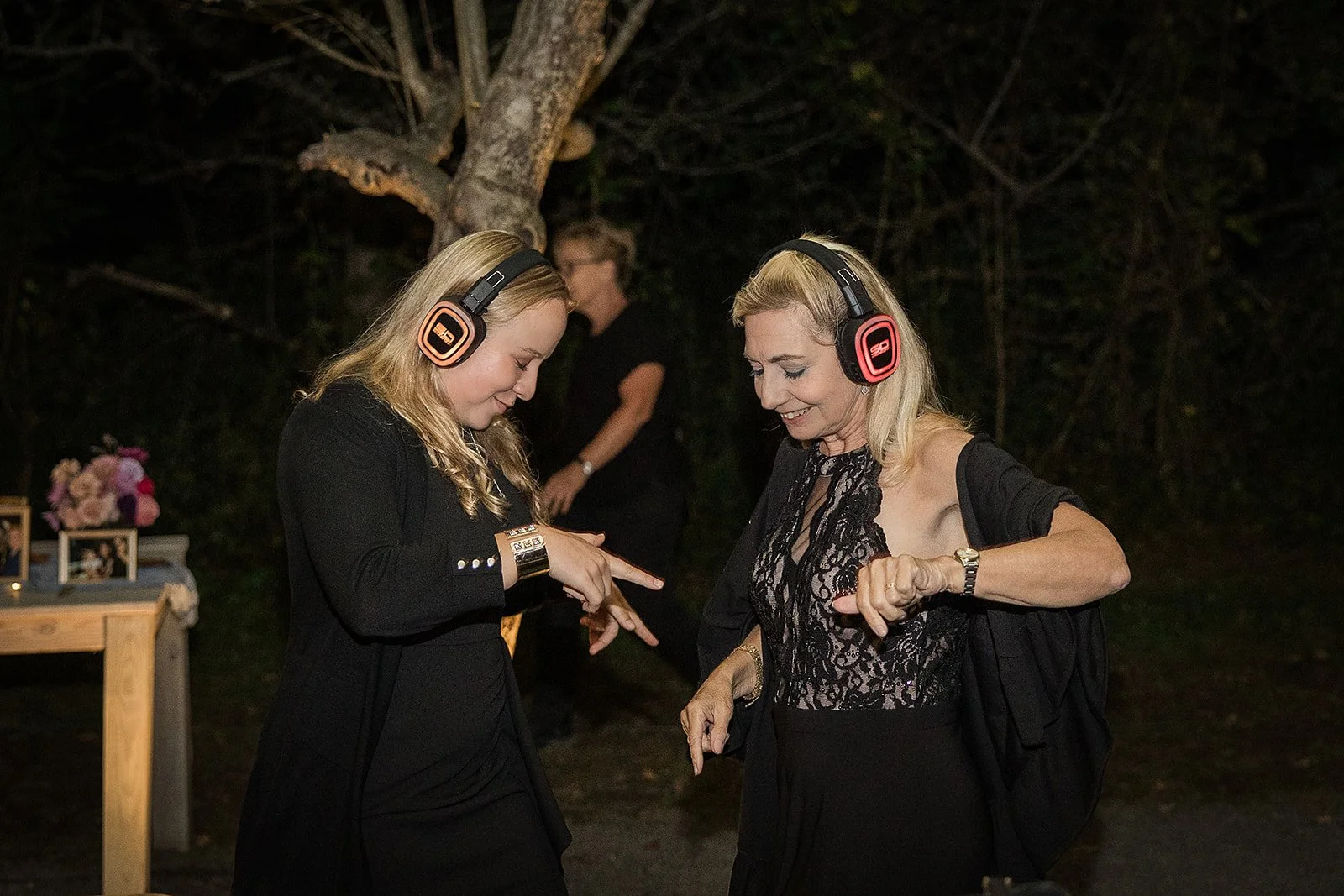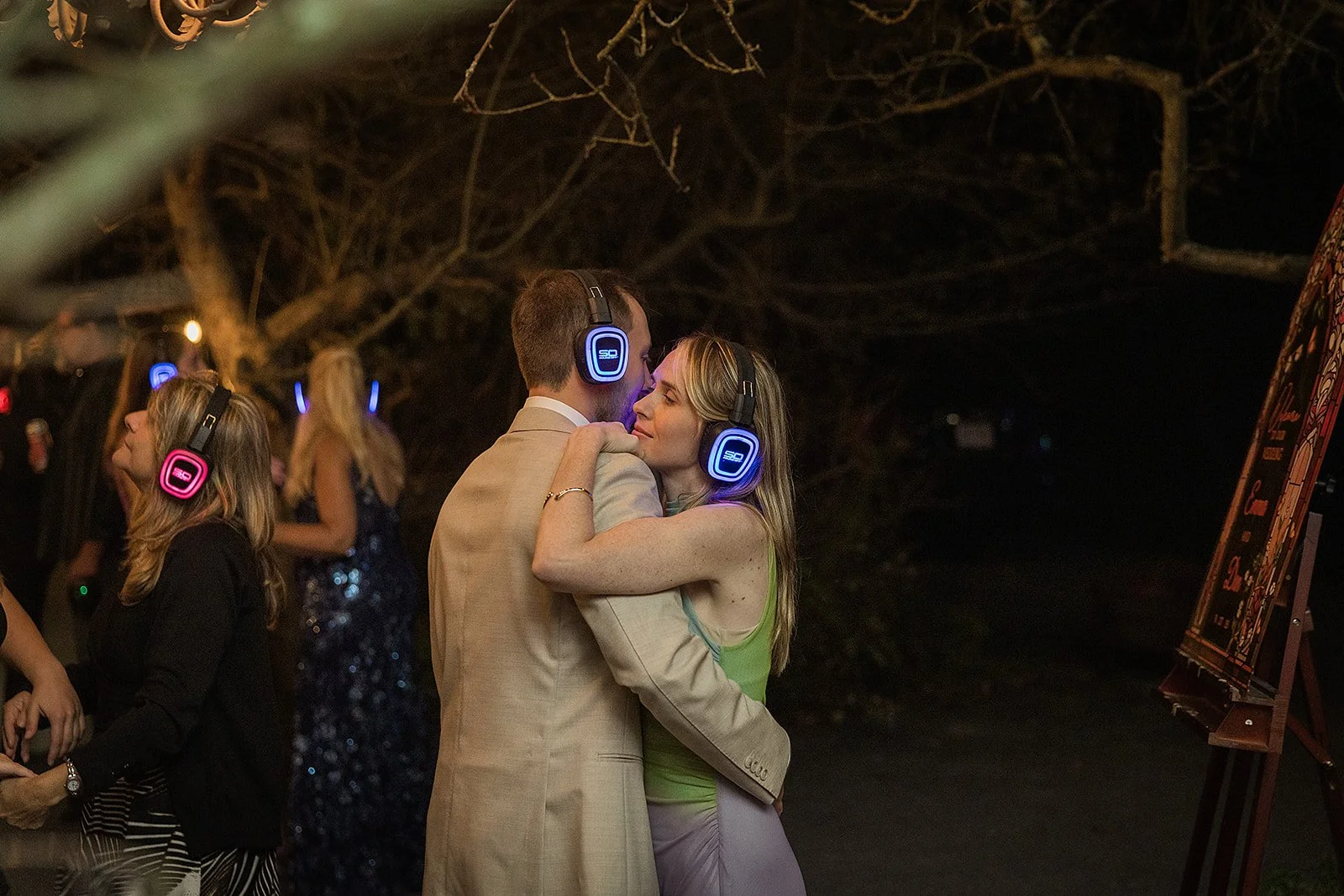 For the "party" portion of the evening, we can transition to our Premium Silent Disco. We’ve found that this is actually more engaging for guests than a traditional DJ because it offers choice: three channels of music playing simultaneously, allowing your guests to curate their own dance floor experience while others enjoy a cocktail and conversation nearby in total peace.