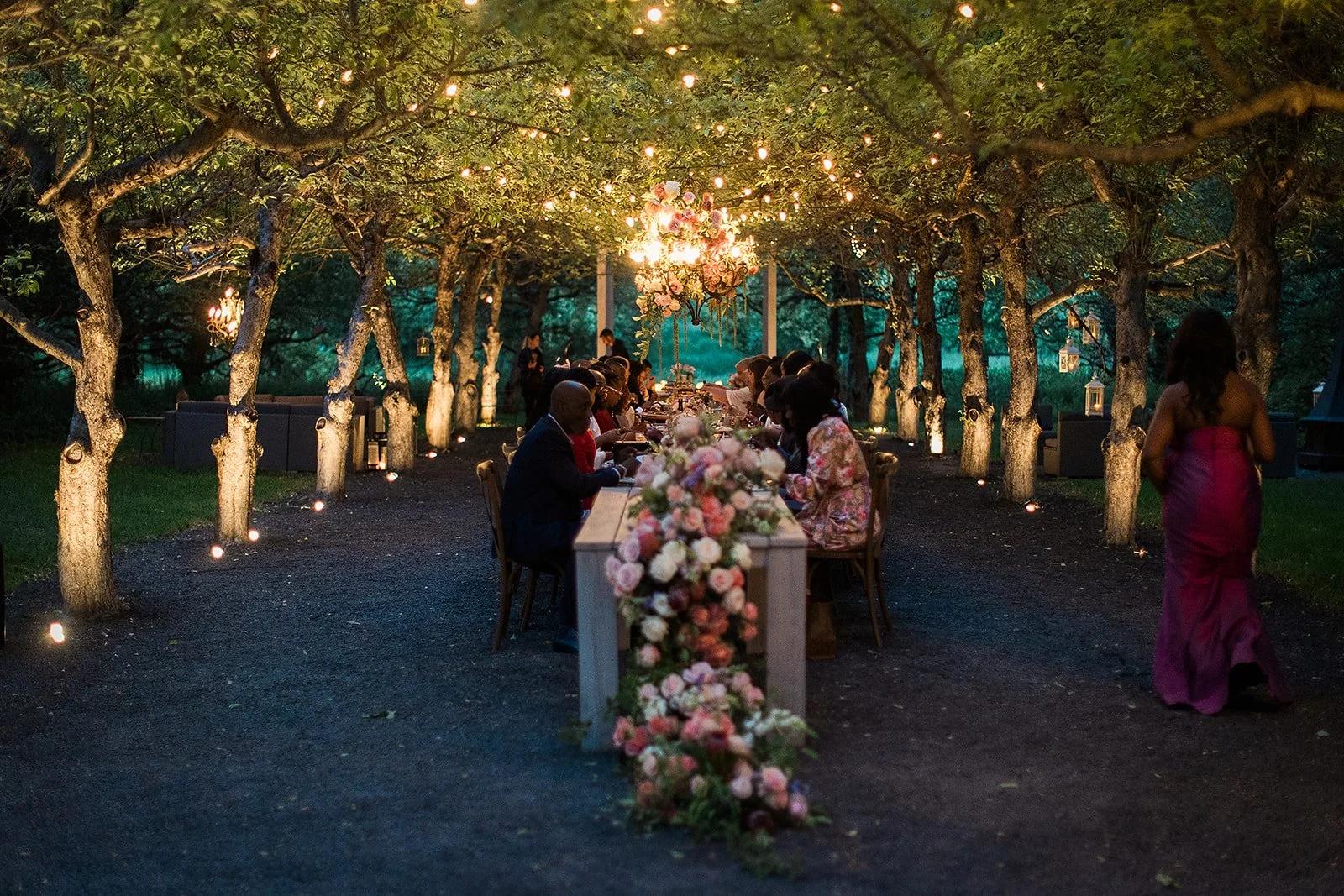 Orchard-Side Dining: Firelight, candlelight, and nature’s own architecture.