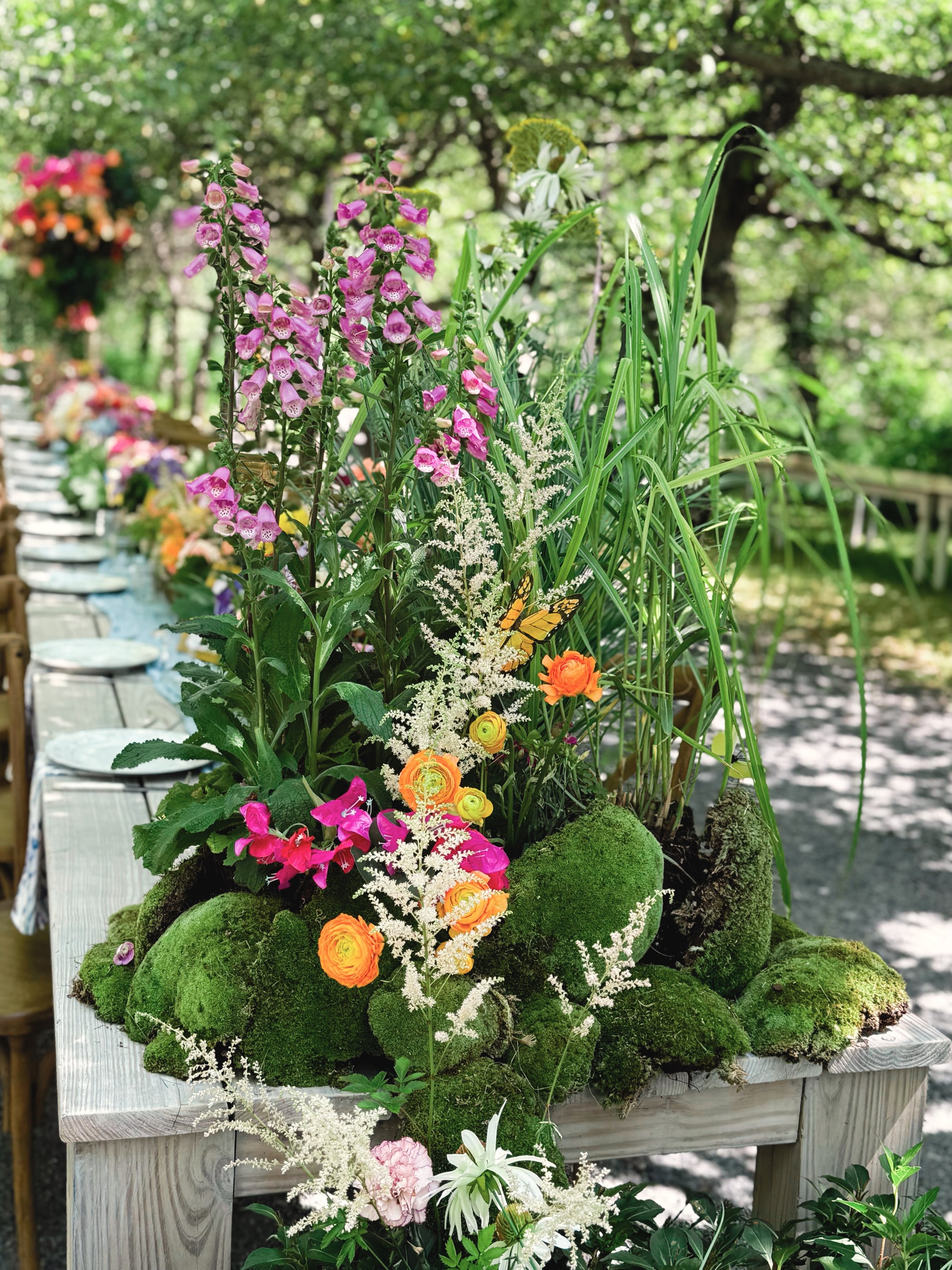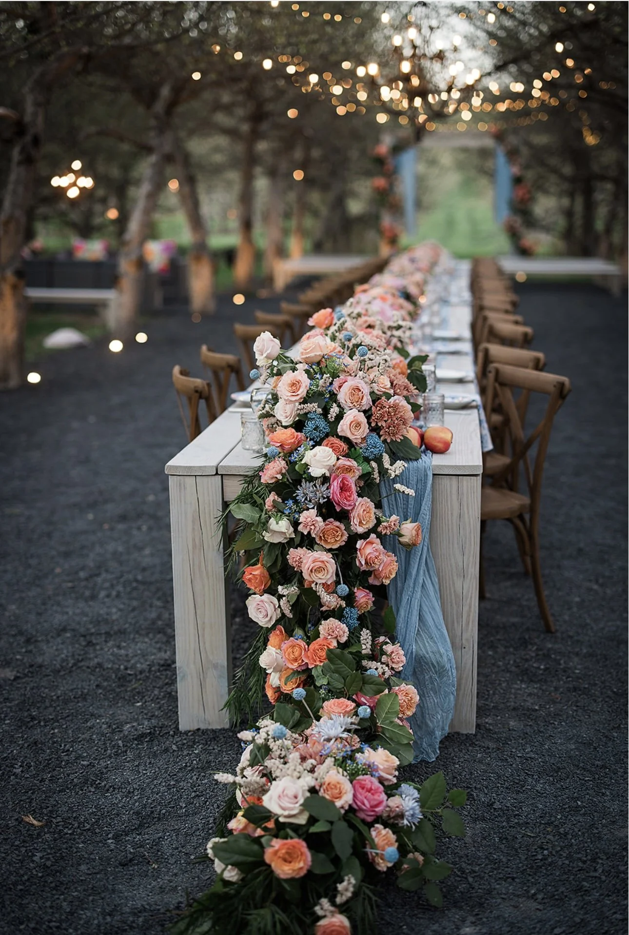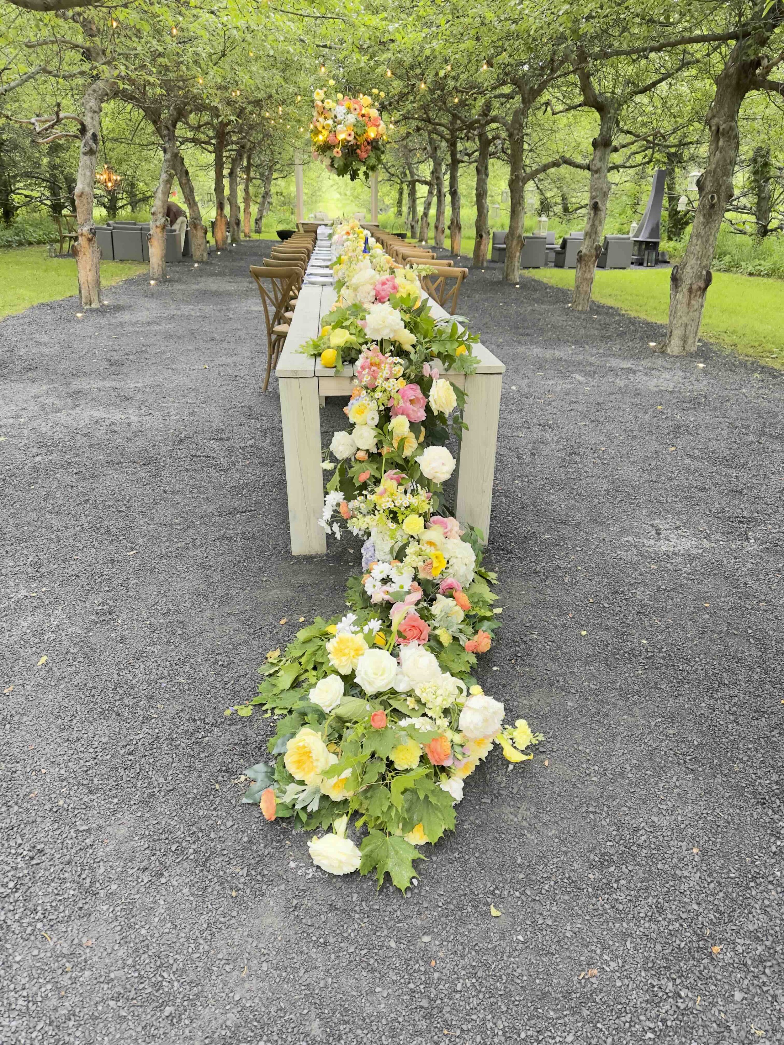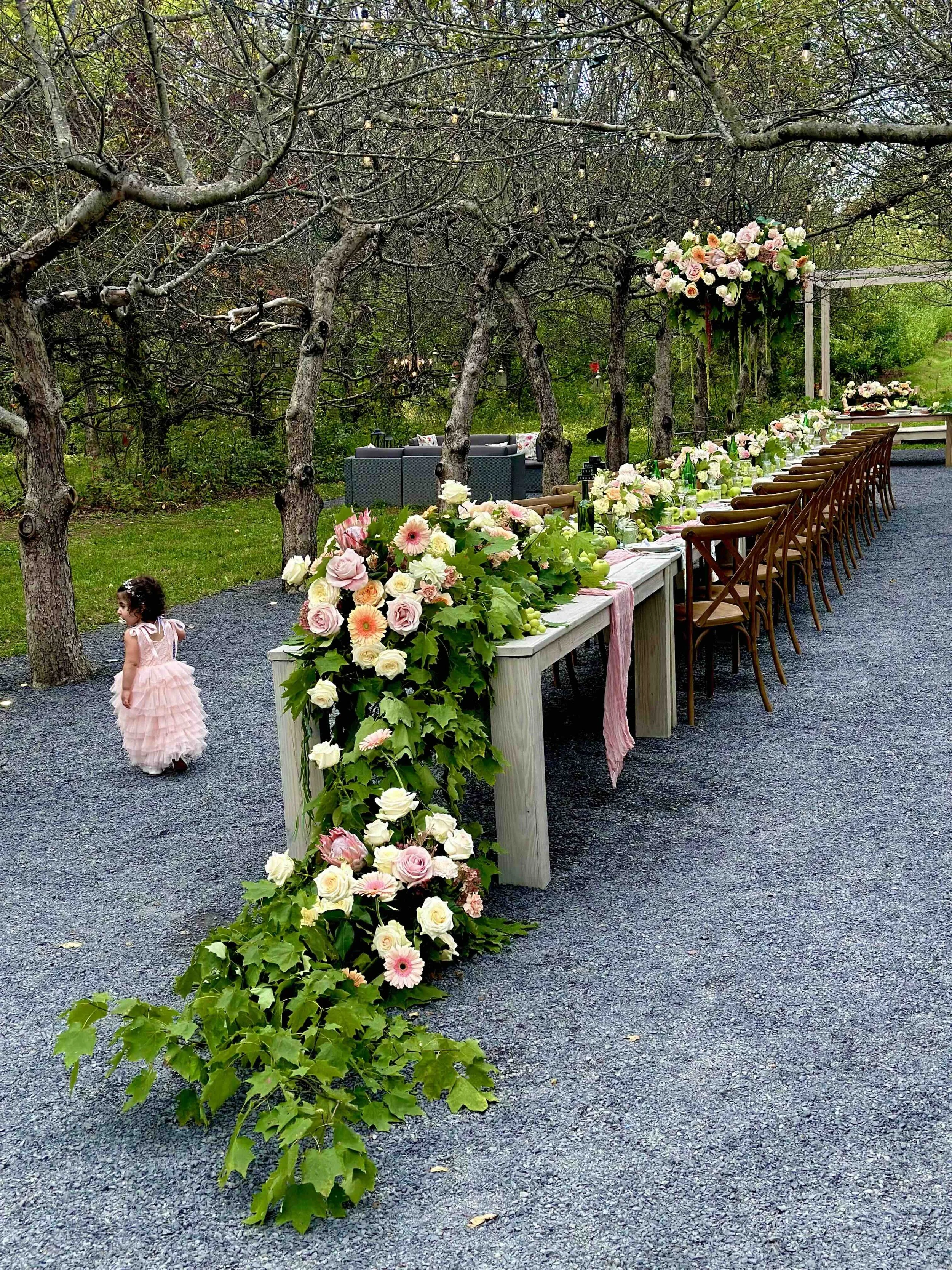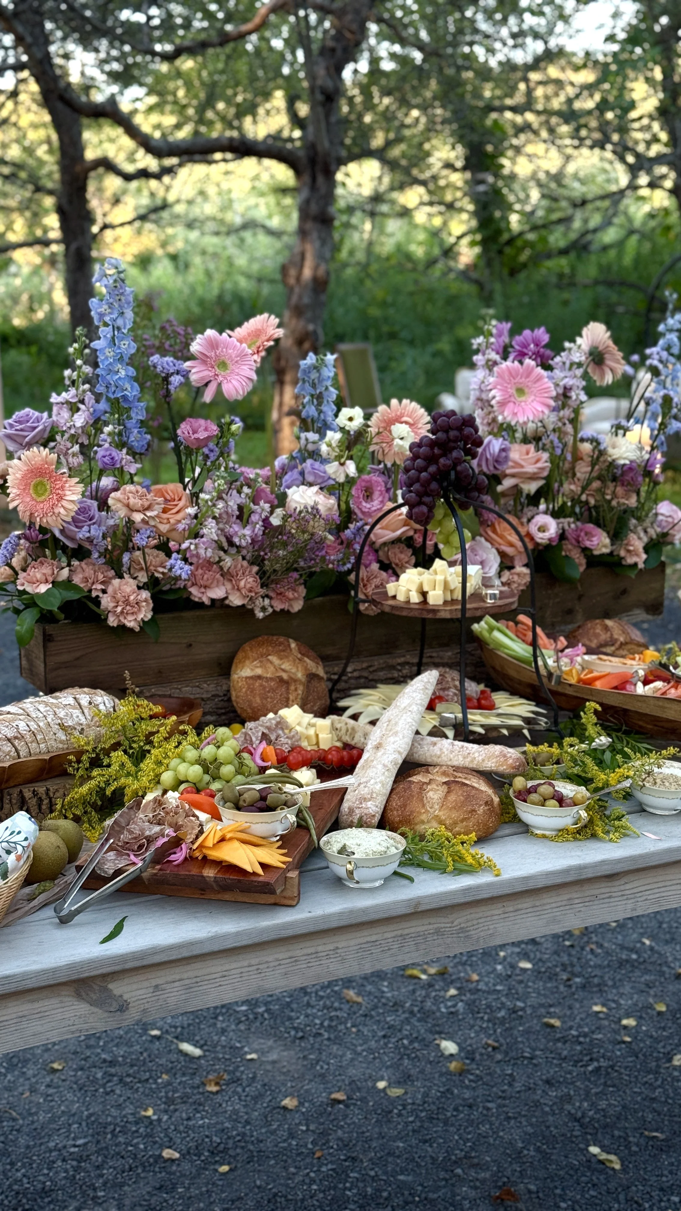 The Atmosphere: Lush "flower-scapes" for your dining tables, a decorated ceremony arbor, and curated designs throughout—from the grazing table and bar to the welcome station and restrooms.