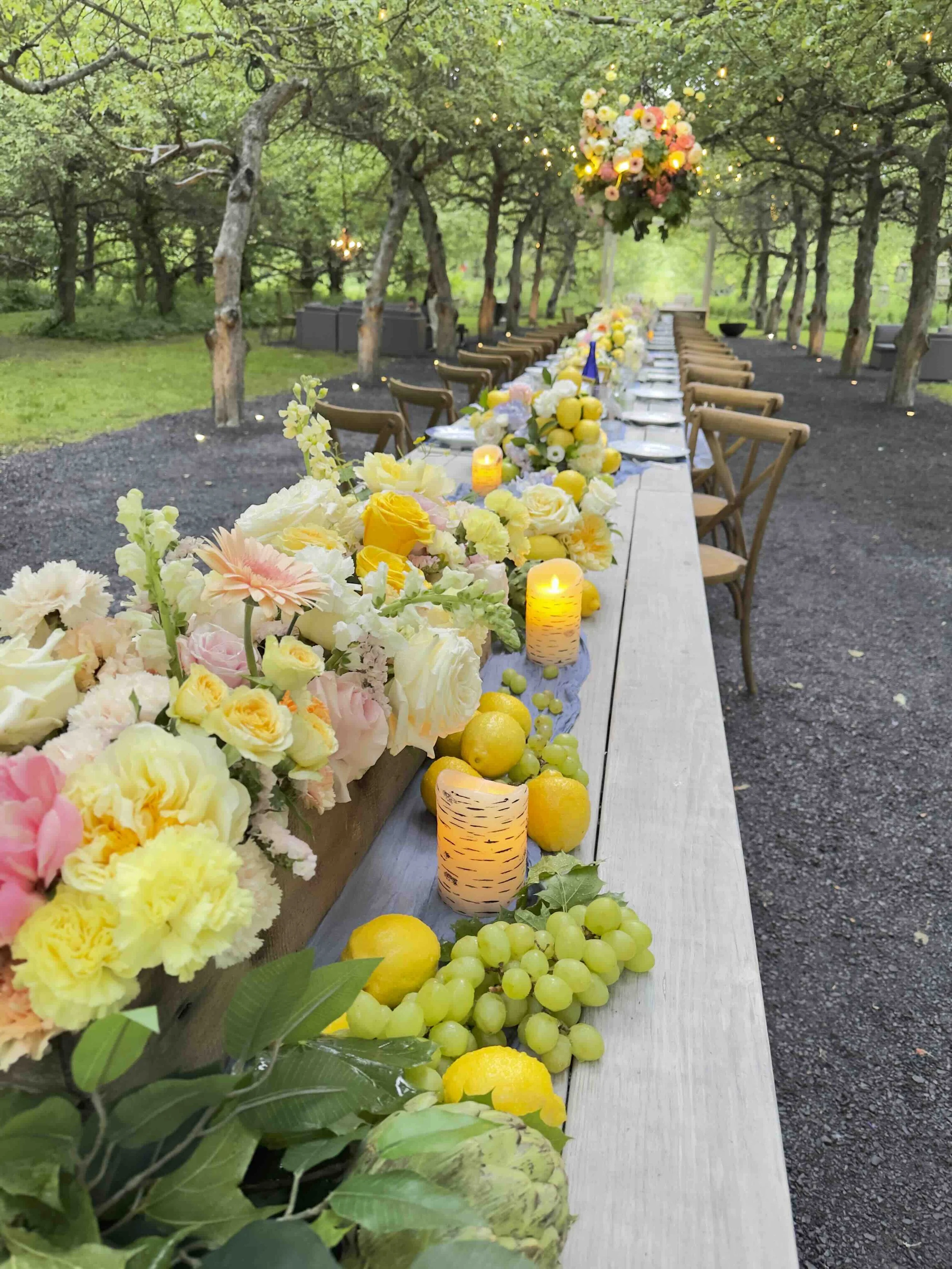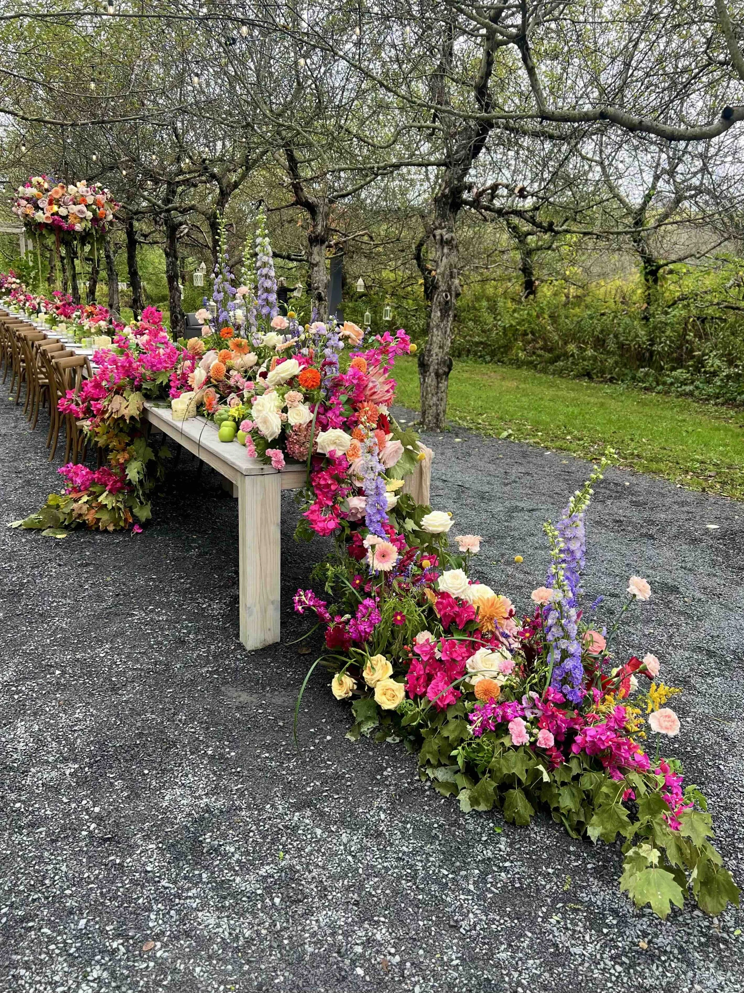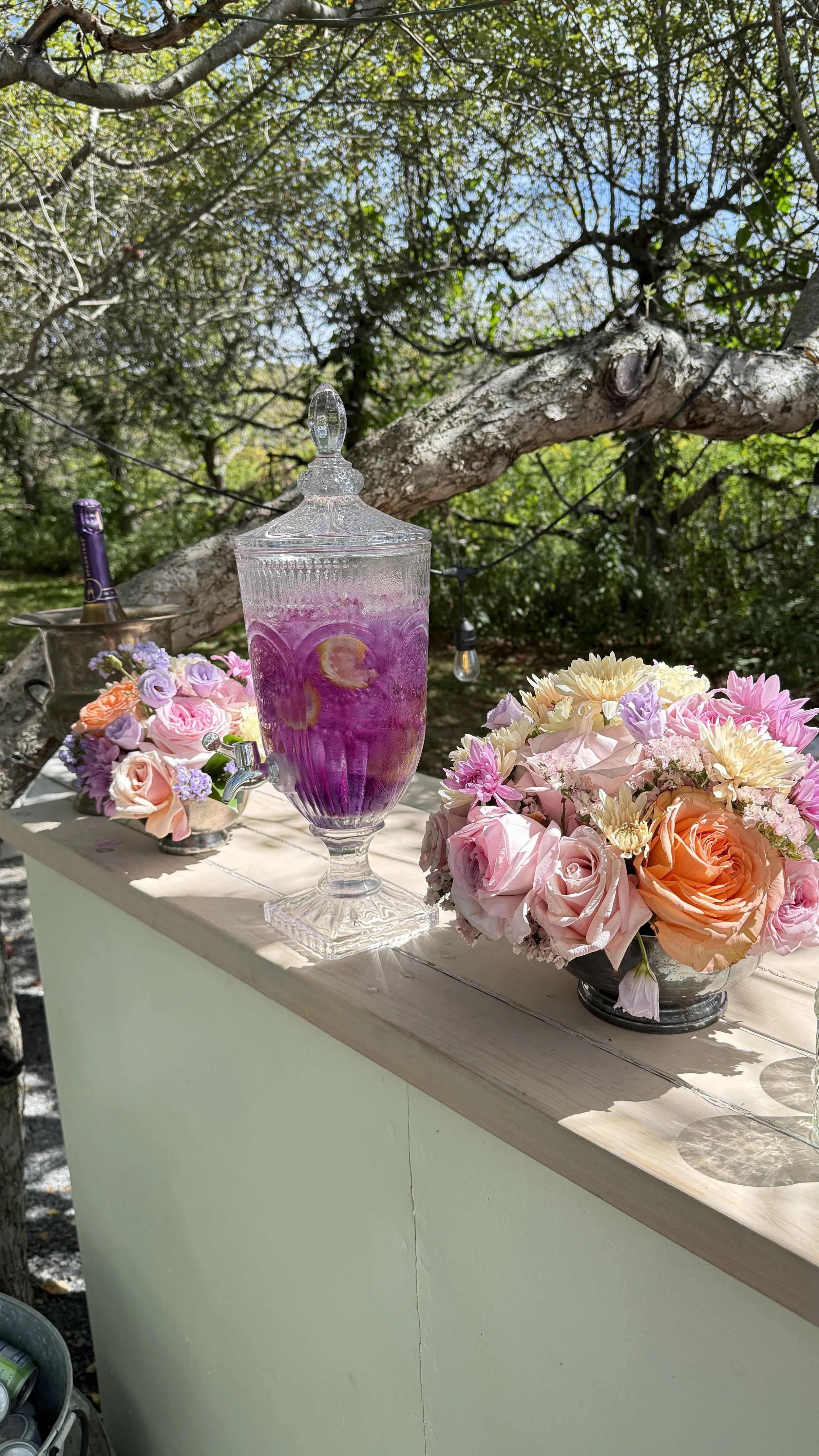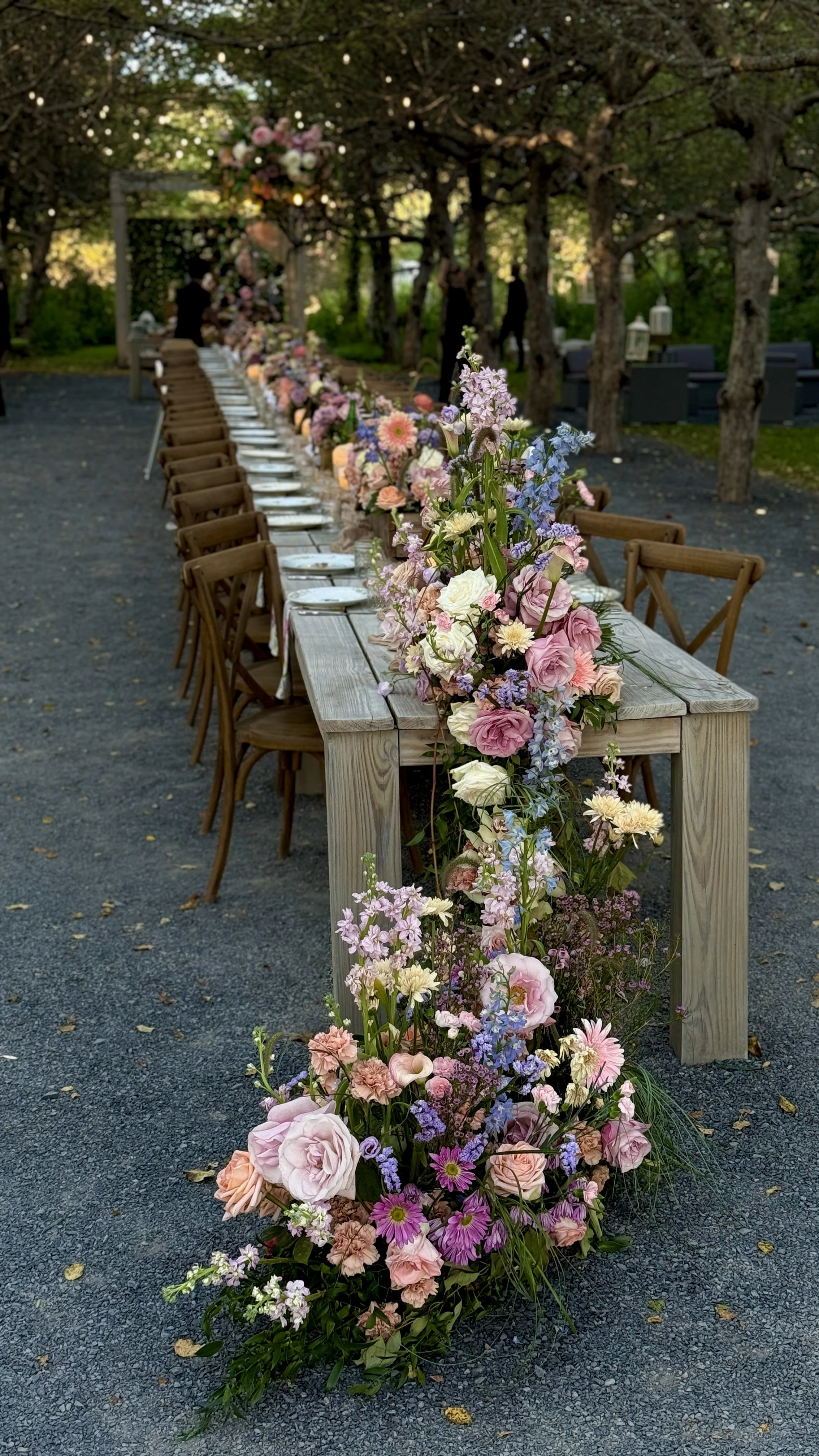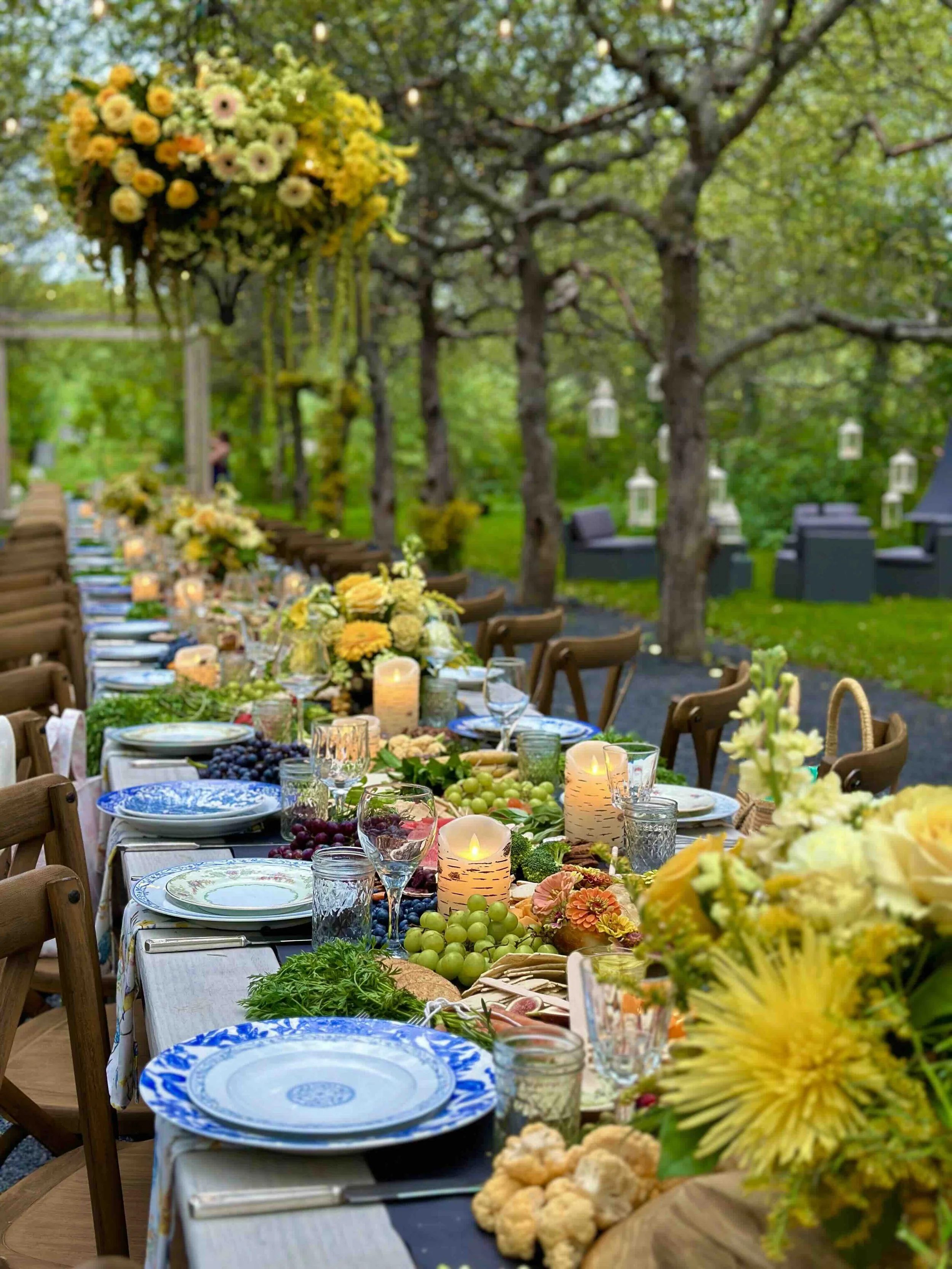 The Atmosphere: Lush "flower-scapes" for your dining tables, a decorated ceremony arbor, and curated designs throughout—from the grazing table and bar to the welcome station and restrooms.