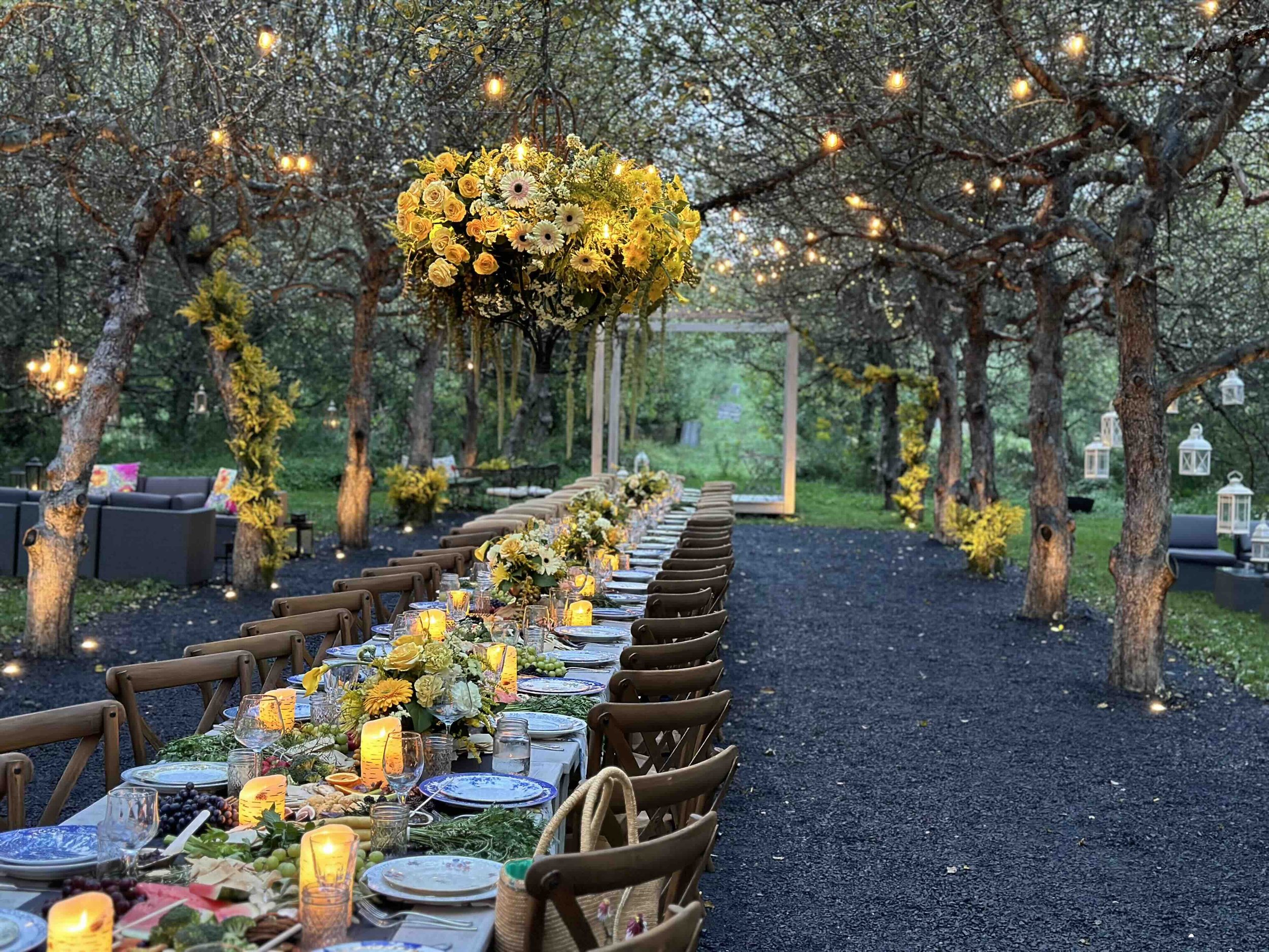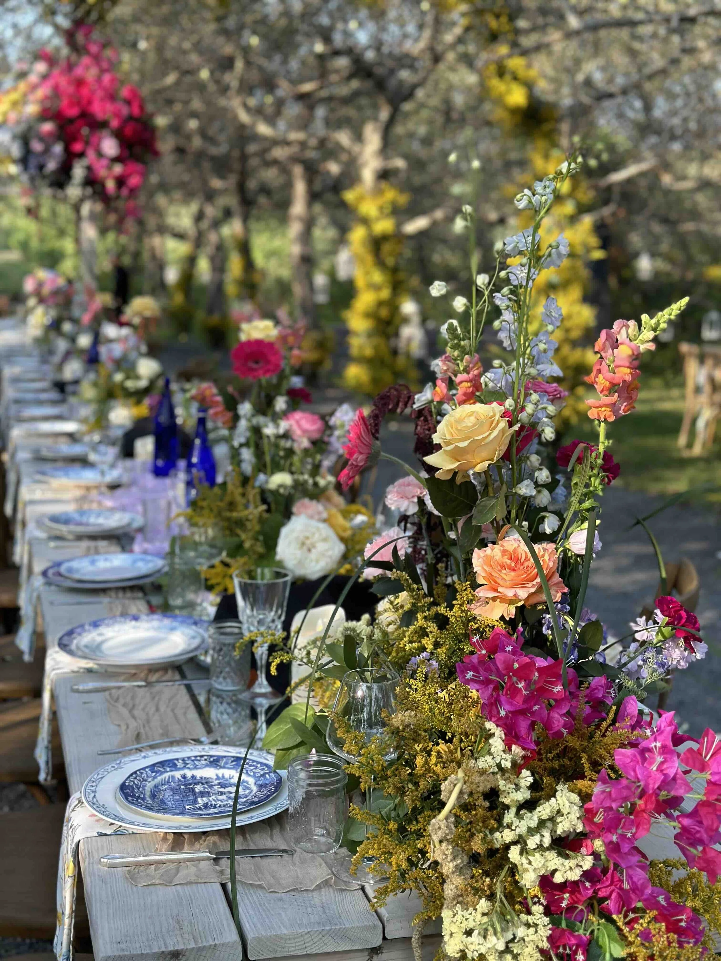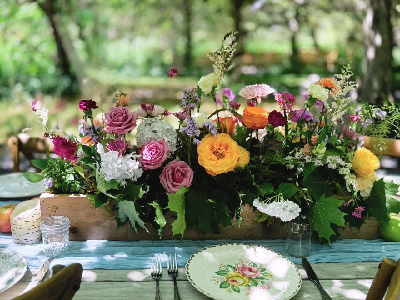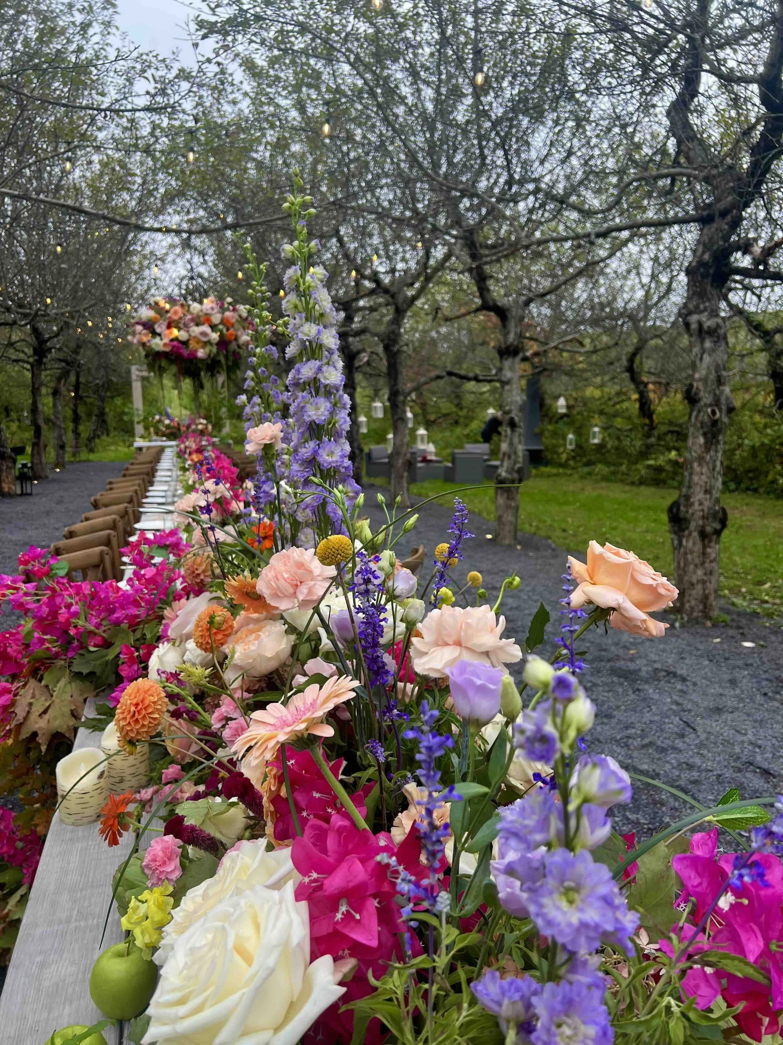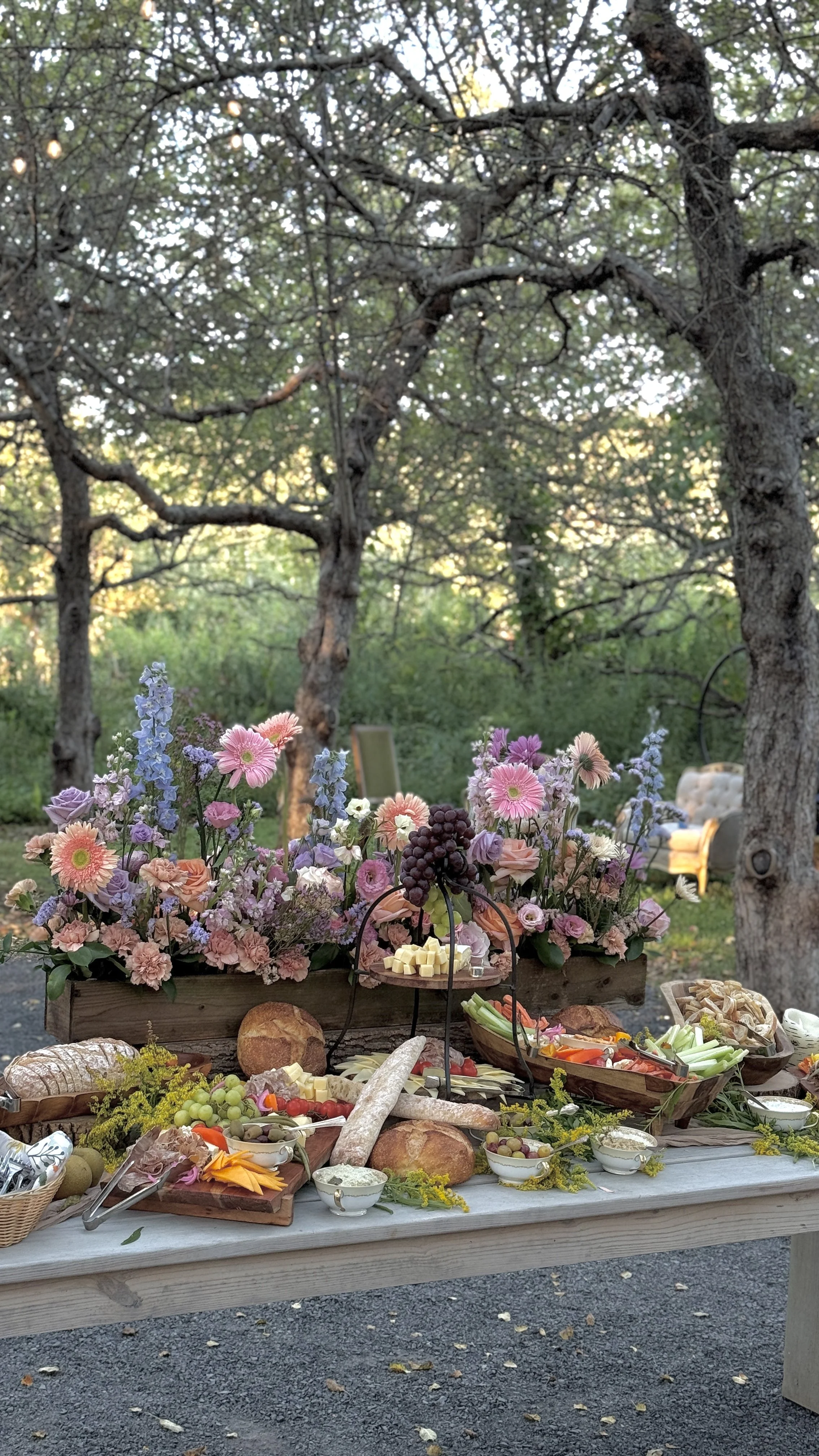 The Atmosphere: Lush "flower-scapes" for your dining tables, a decorated ceremony arbor, and curated designs throughout—from the grazing table and bar to the welcome station and restrooms.