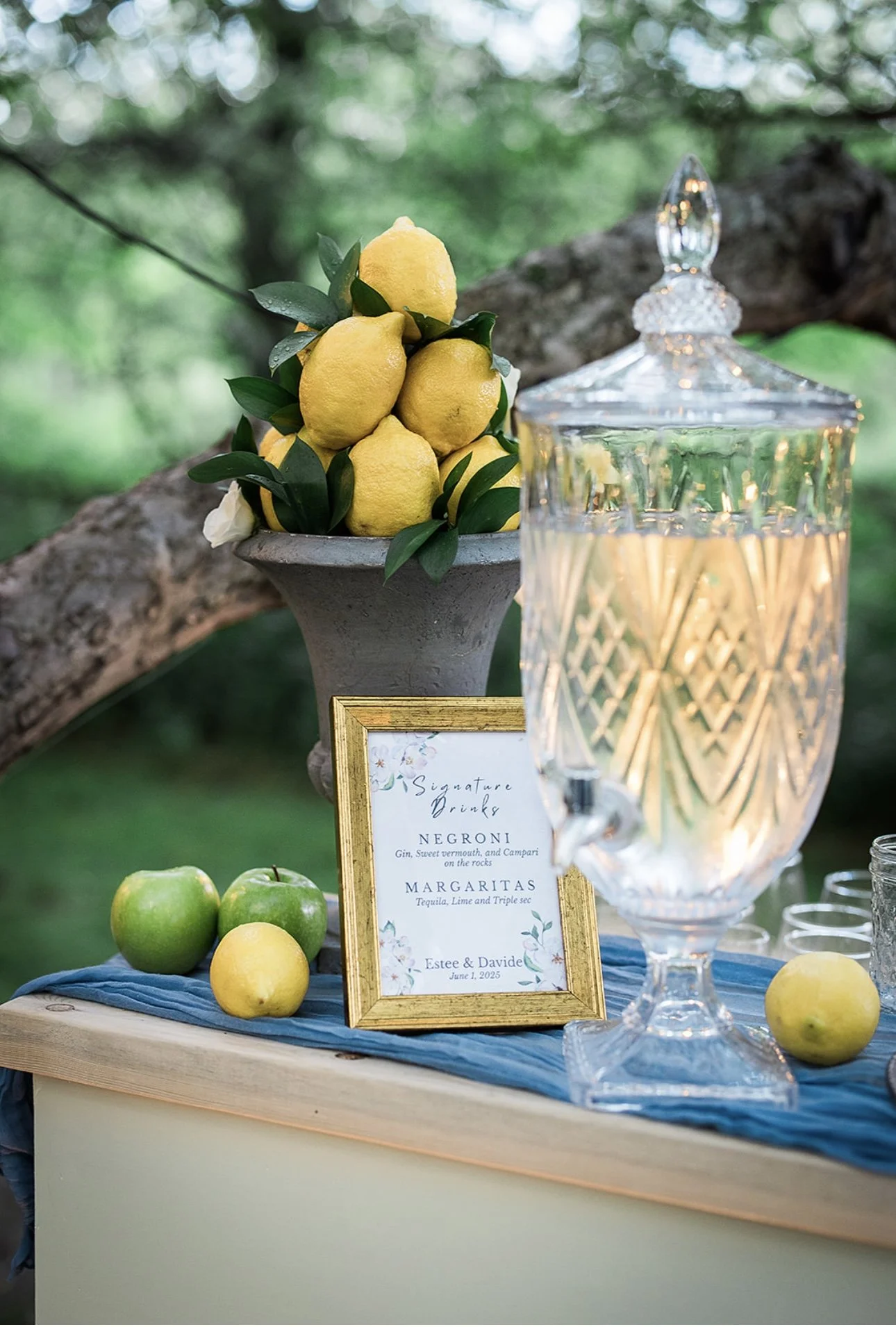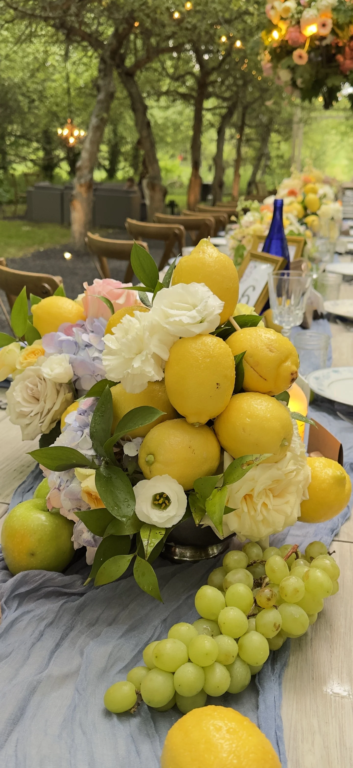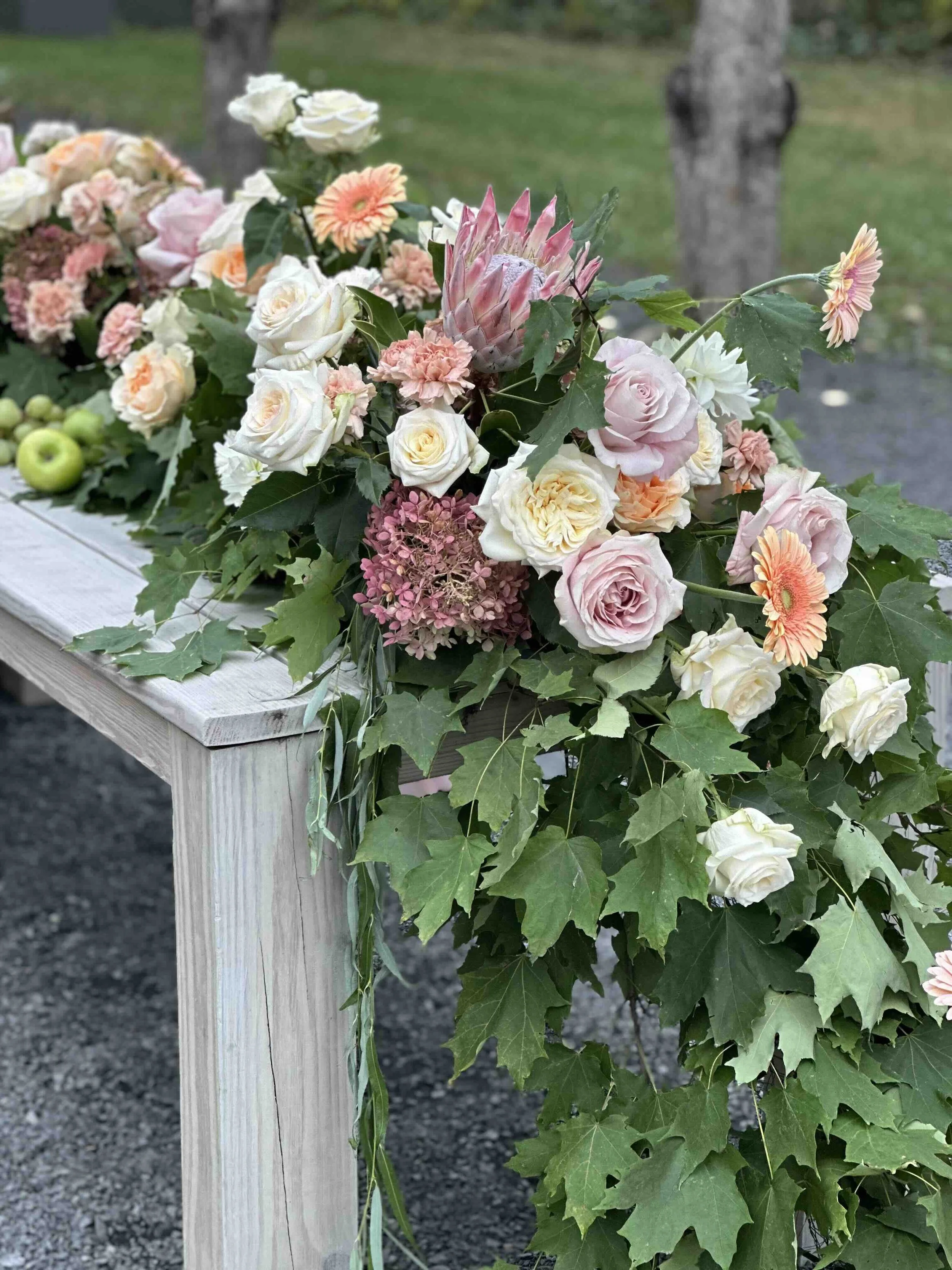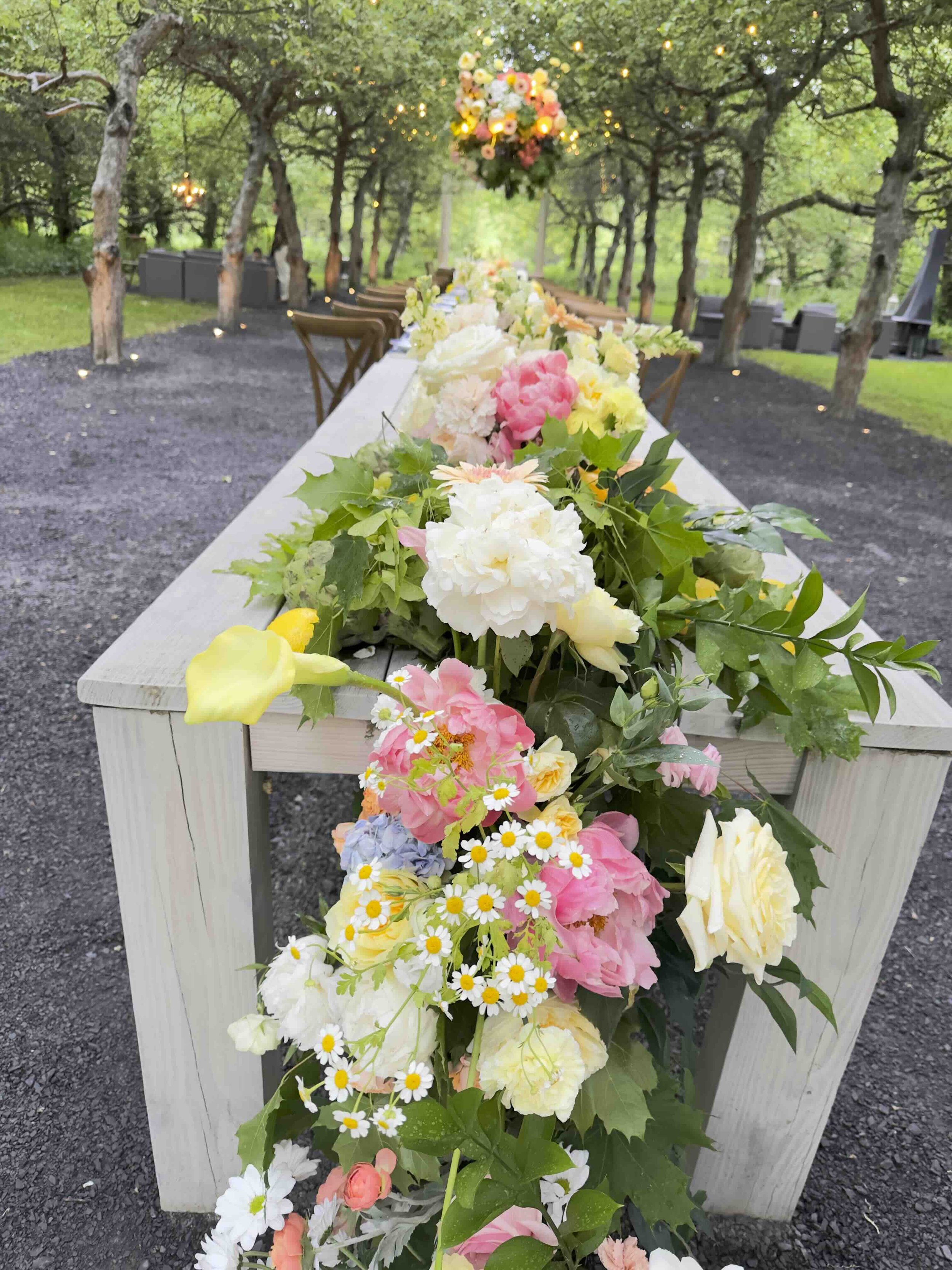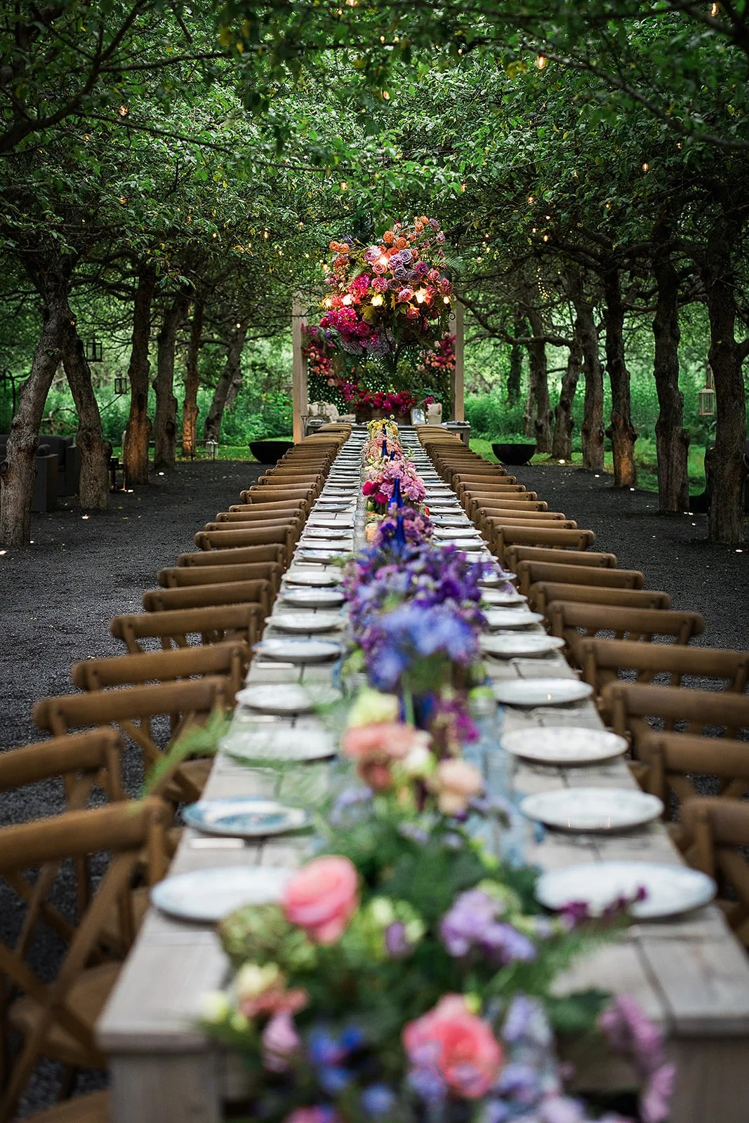 The Atmosphere: Lush "flower-scapes" for your dining tables, a decorated ceremony arbor, and curated designs throughout—from the grazing table and bar to the welcome station and restrooms.