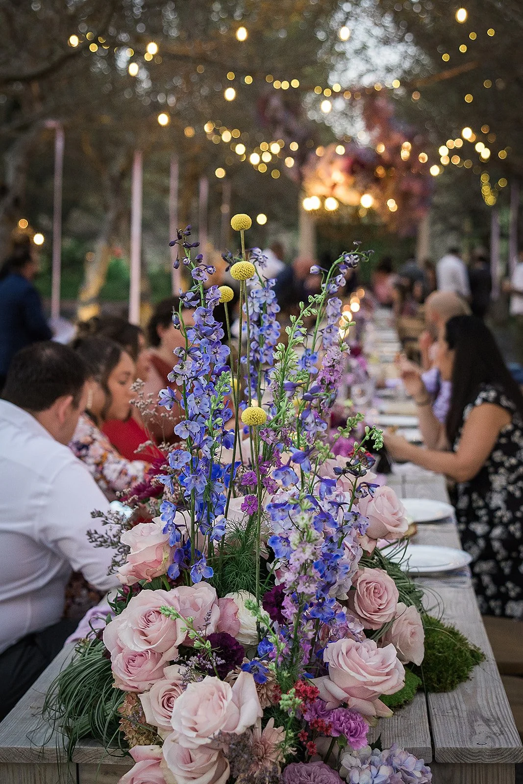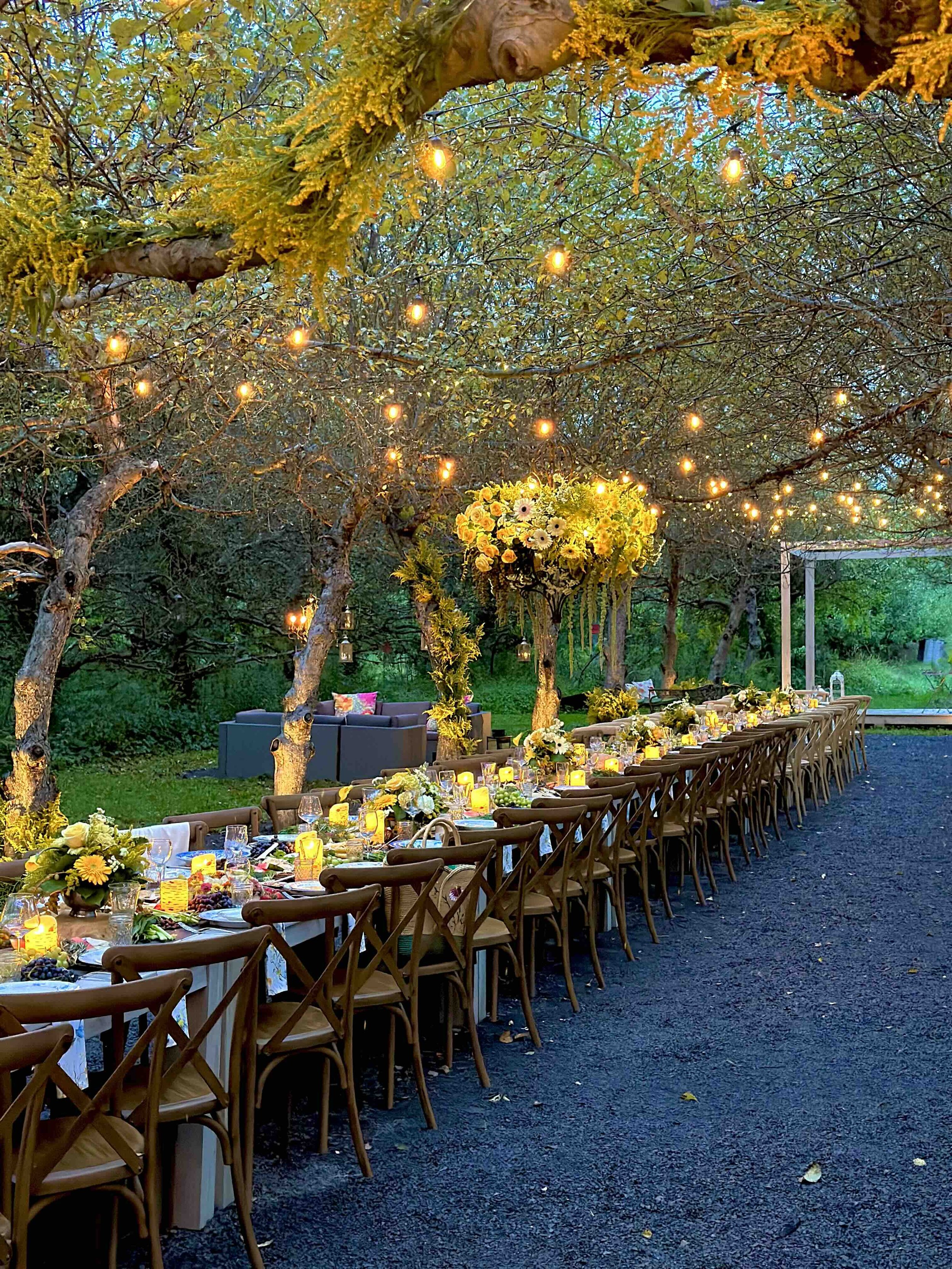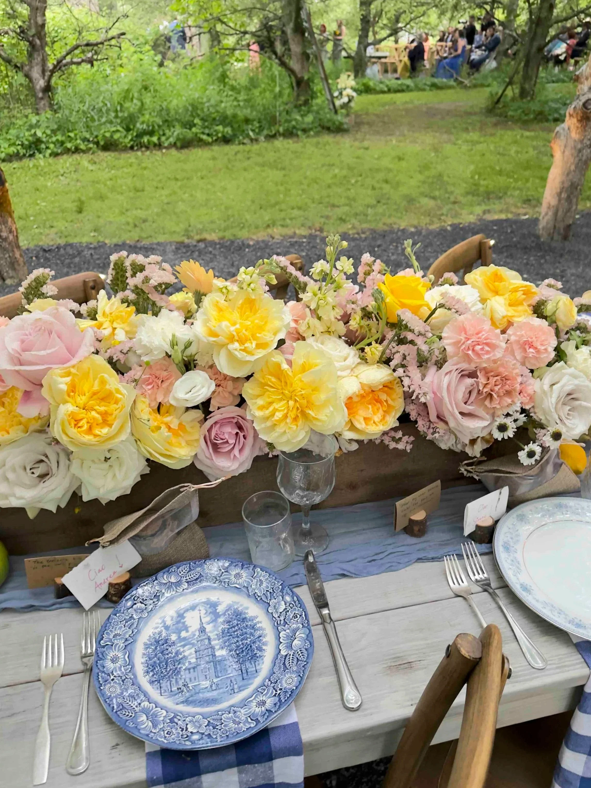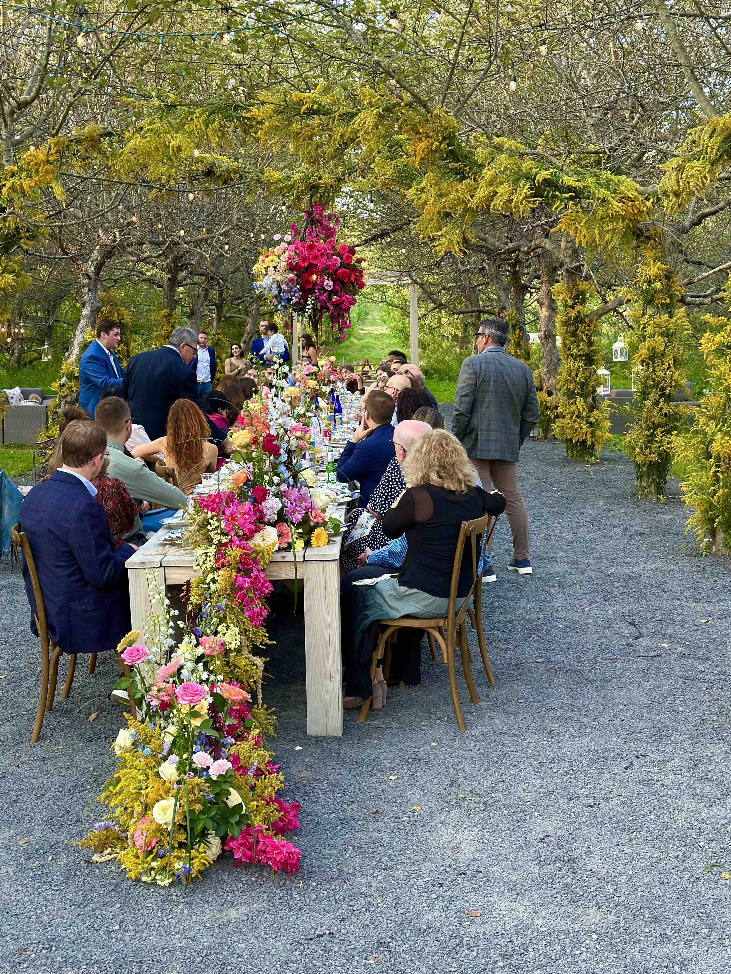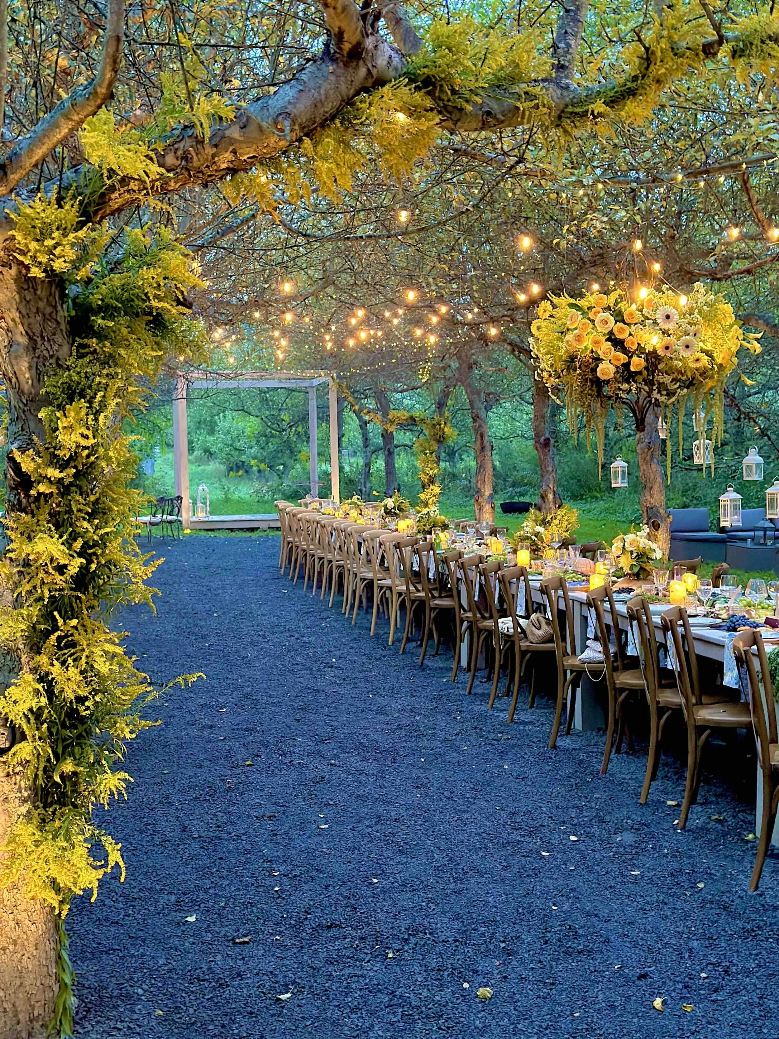 The Atmosphere: Lush "flower-scapes" for your dining tables, a decorated ceremony arbor, and curated designs throughout—from the grazing table and bar to the welcome station and restrooms.